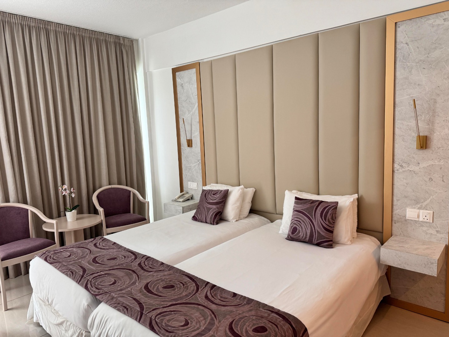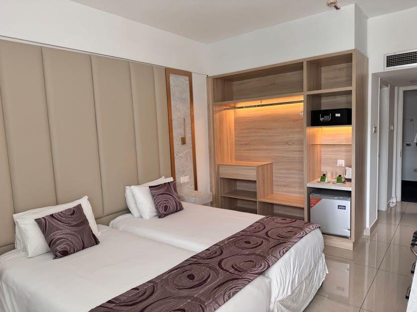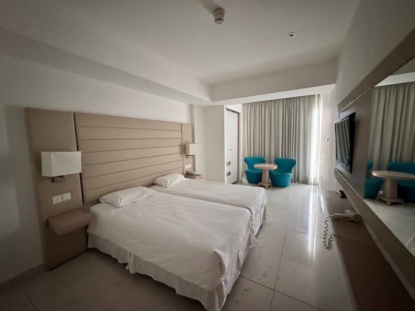 Do dyspozycji gości jest ponad 190 wygodnych pokoi, mieszczących się w dwóch budynkach. Standardowe pokoje 2-osobowe (możliwość dostawki dla osoby dorosłej lub dziecka), wyposażone w łazienkę (wanna lub prysznic, WC, suszarka do włosów), indywidualnie sterowaną klimatyzację, TV-sat, telefon, mini bar, sejf (za dodatkową opłatą, ok. 2 EUR/dzień i depozyt 5 EUR) oraz balkon lub taras.