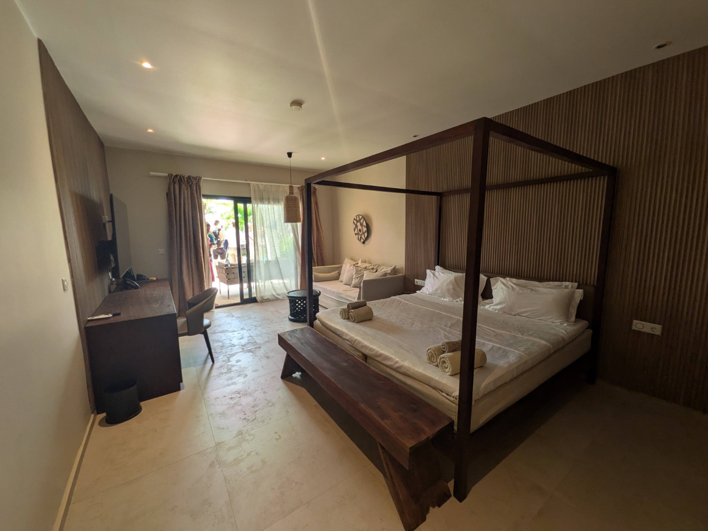 Hotel dysponuje 140 pokojami różnego typu rozlokowanymi w 2-kondygnacyjnych budynkach. Komfortowo urządzone 2-osobowe pokoje typu Classic Suite o pow. ok. 44m2 z optycznie wydzieloną częścią dzienną, wyposażone są w łazienkę (prysznic, WC, suszarka do włosów), klimatyzację, TV-Sat., sejf, mini lodówkę, czajnik, szlafrok i kapcie kąpielowe oraz balkon lub taras. W ofercie pokoje z widokiem na okolicę, basen lub ocean. Pokoje typu Prime Pool Suite wyposażone jak pokoje Classic Suite, dodatkowo posiadają taras z leżakami, z widokiem na ocean lub basen, z bezpośrednim dostępem do basenu dzielonego z 10 lub 18 apartamentami na poziomie ogrodu. Hotel nie posiada pokoi przystosowanych dla osób z niepełnosprawnościami.