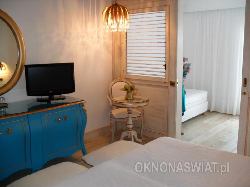 Superior • 2-os. (26 m2) • możliwość 1 dostawki • klimatyzacja indywidualna (bezpłatnie) • Wi-Fi (odpłatnie) • LCD TV-SAT, telefon • minibar (bezpłatnie) • sejf (bezpłatnie) • łazienka- wanna/prysznic, suszarka • balkon lub taras, widok na morze Bungalow • 2-4 os. (ok. 28 m2) • wyposażony jak pokój superior Rodzinny • 4 os. (ok. 30-32 m2) • pokój dzienny oraz sypialnia oddzielona przesuwnymi drzwiami • wyposażony jak pokój superior