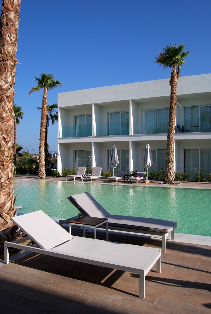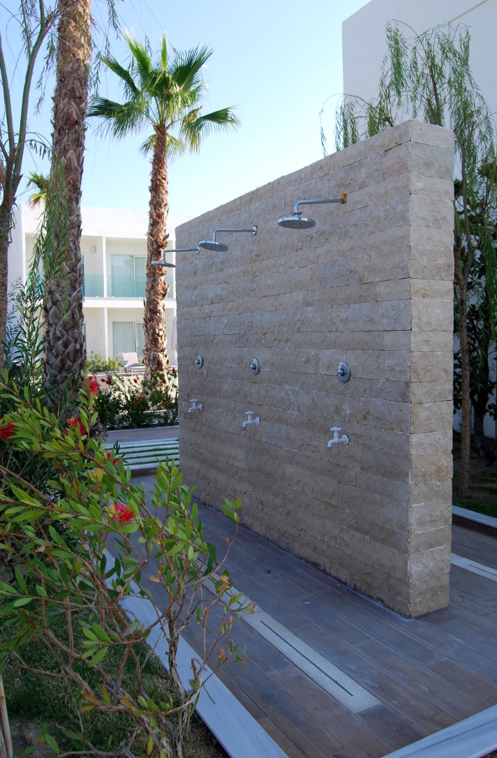 najbliższa plaża publiczna znajduje się około 850 metrów od hotelu, jest piaszczysta, z łagodnym zejściem do morza, wyróżniona certyfikatem Błękitna Flaga; dojście prowadzi drogą lokalną; leżaki i parasole są dostępne za opłatą