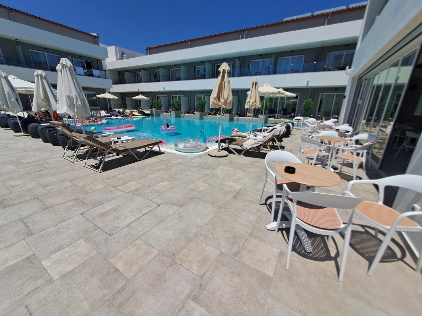Hotel posiada 196 nowocześnie urządzonych i eleganckich pokoi usytuowanych w 1-piętrowych budynkach. Wyposażone są w łazienkę z prysznicem, indywidualnie sterowaną klimatyzację (bezpłatną), TV-sat LCD 32"(polskie kanały satelitarne), minisejf (bezpłatny), lodówkę, czajnik, telefon, suszarkę do włosów oraz balkony lub tarasy. Łóżeczka dla dzieci bezpłatnie (ilość ograniczona). Do dyspozycji oferujemy pokoje standardowe (ok. 23m2) z możliwością zakwaterowania do 3 osób dorosłych (dostawka w postaci normalnego łóżka), lub pokoje rodzinne (ok. 32m2), przeznaczone dla maksymalnie 4 osób (dwa dodatkowe łóżka pojedyncze). Pokoje rodzinne są większe od standardowych z częściowo oddzieloną sypialnią (przesuwne, ażurowe drzwi).