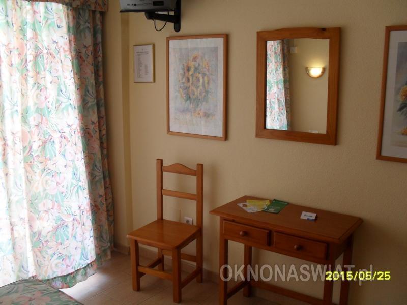 | Pokoje | Funkcjonalnie urządzone pokoje 2-osobowe (możliwa dostawka) z łazienkami i WC (możliwość wypożyczenia suszarki w recepcji za opłatą). W każdym pokoju telefon, TV-sat, radio, klimatyzacja i balkon, za dopłatą minisejf (17 eur/tydzień + depozyt 18 eur). Widok na ogród i basen lub na morze. Na zamówienie pokoje rodzinne (połączone wewnętrznymi drzwiami - nie ma zniżek dla dzieci). Możliwe pokoje 2 os z 2 dostawkami (na potwierdzenie). Łóżeczko dla dziecka do 2 lat płatne dodatkowo na miejscu ok. 8 Eur/dzień. Hotel posiada pokoje przed i po remoncie. |