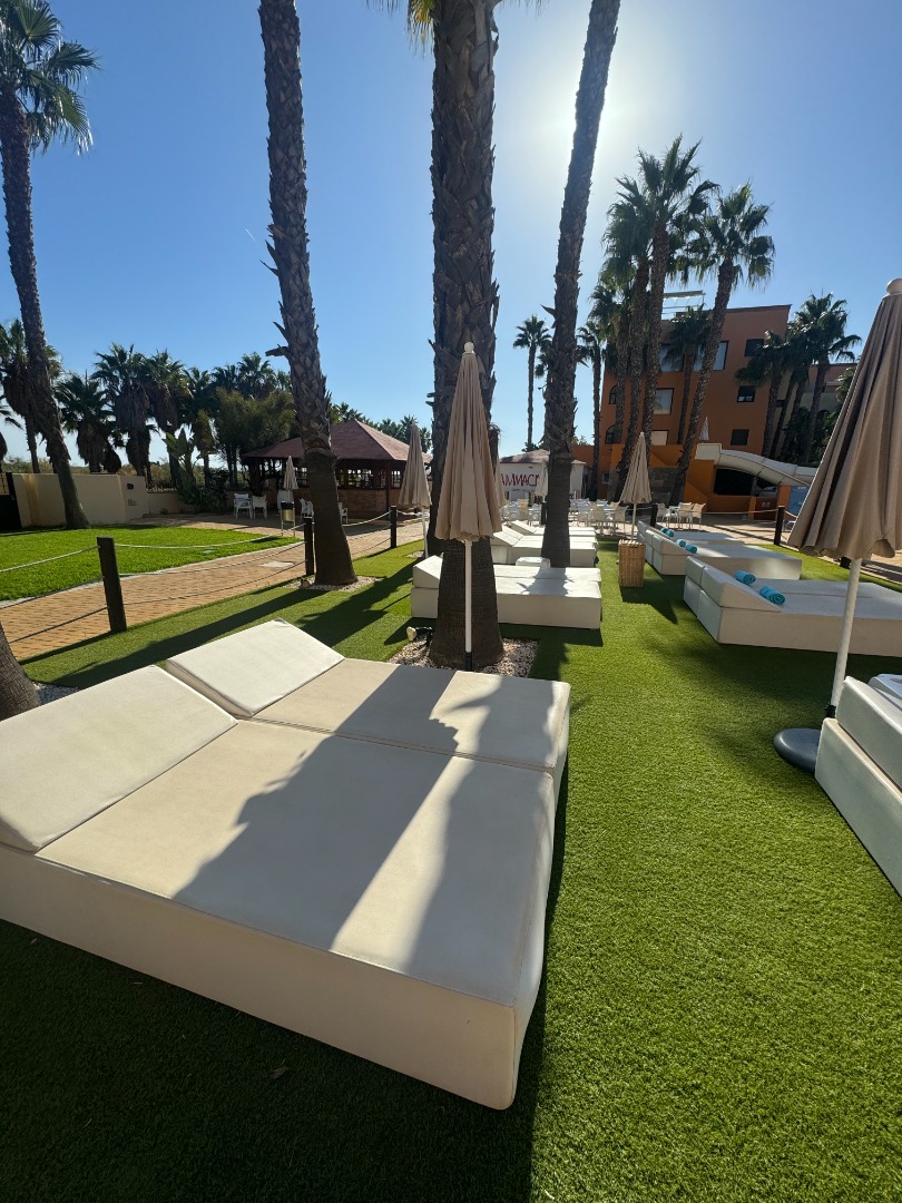 2 baseny, w tym 1 ze zjeżdżalniami, jacuzzi, taras słoneczny z leżakami i parasolami, ręczniki basenowe (depozyt ok. 10 Euro/os, wymiana ręcznika 1 Euro).