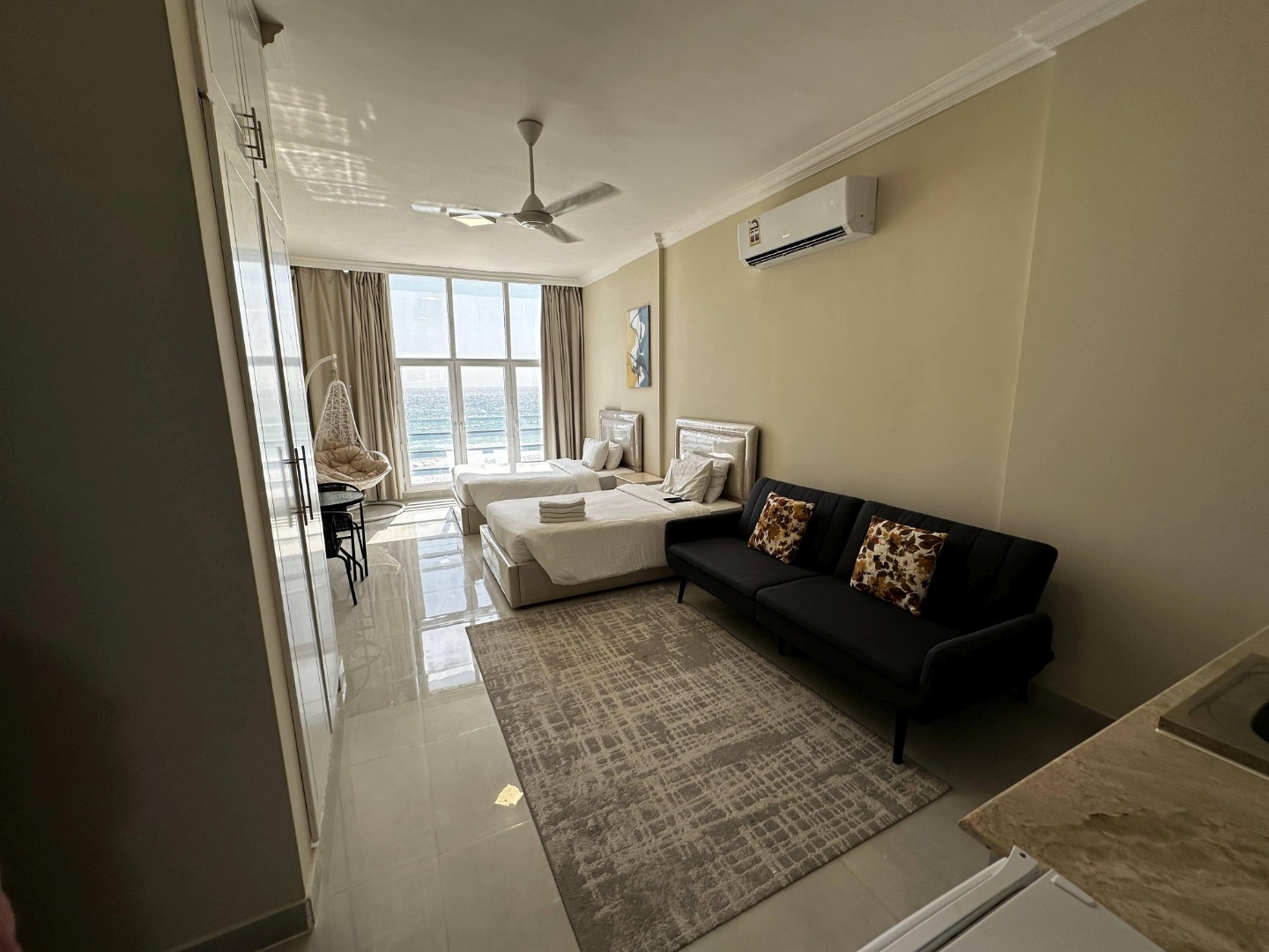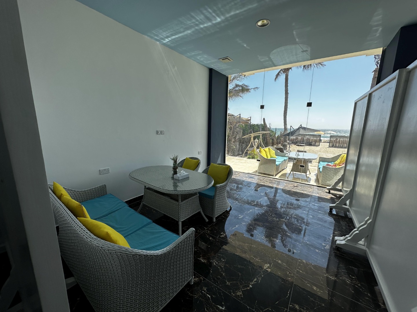Położony jest przy plażach Al Dahariz w Salalah, Oman, z zapierającymi dech widokami na ocean i malownicze zachody słońca.
