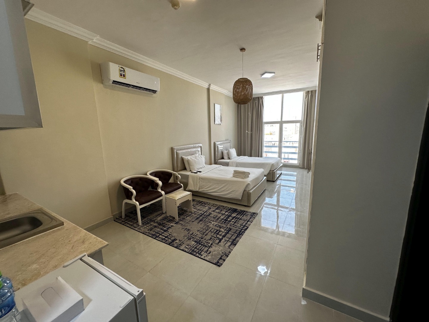 Hotel posiada 32 pokoje. Wszystkie wyposażone w aneks kuchenny, indywidualnie sterowaną klimatyzację, internet Wi-Fi, TV-sat oraz zestaw do parzenia kawy i herbaty. Dostępne pokoje z widokiem na sąsiednie budynki lub na morze. Pokoje nie posiadają balkonów.