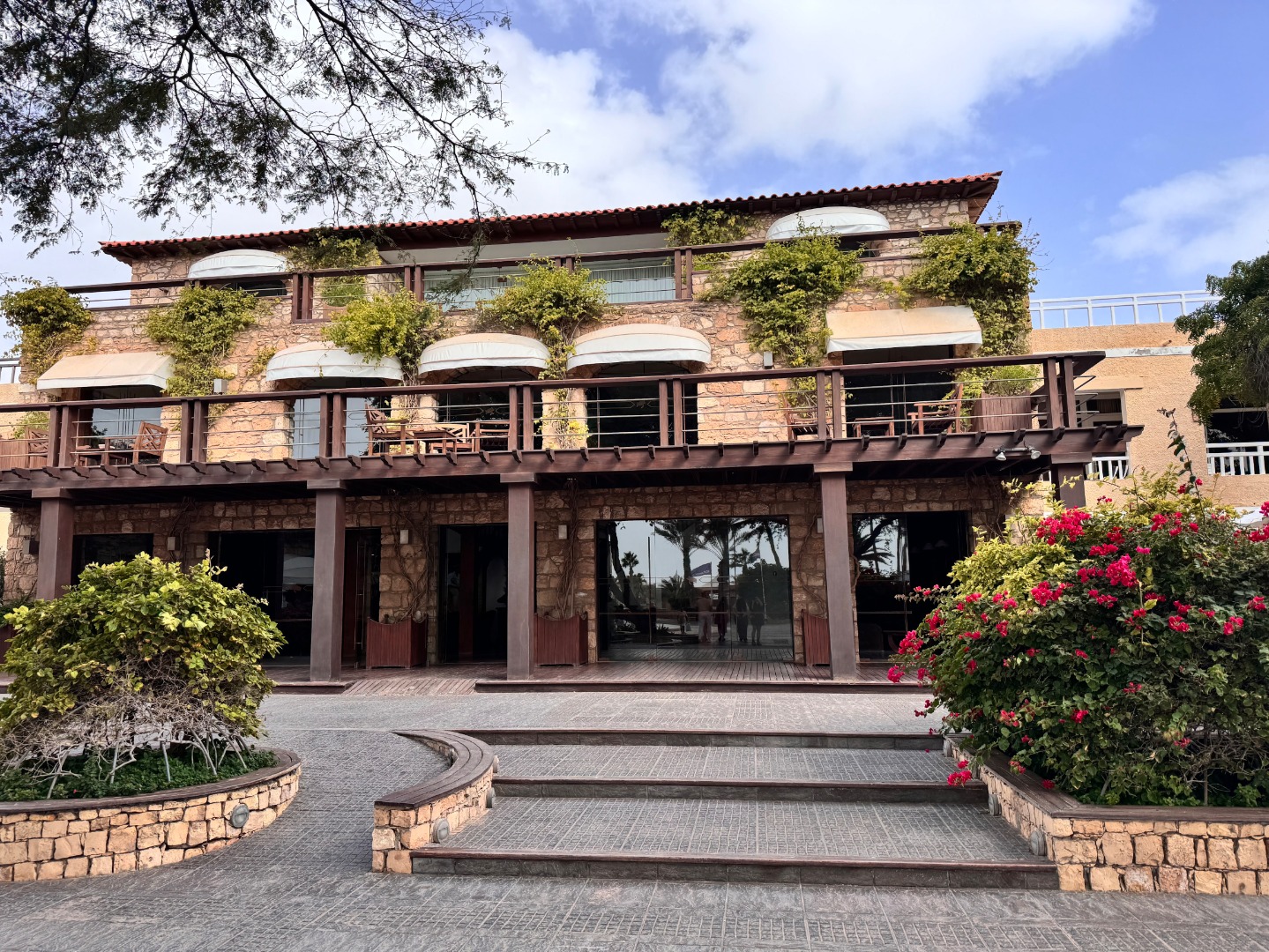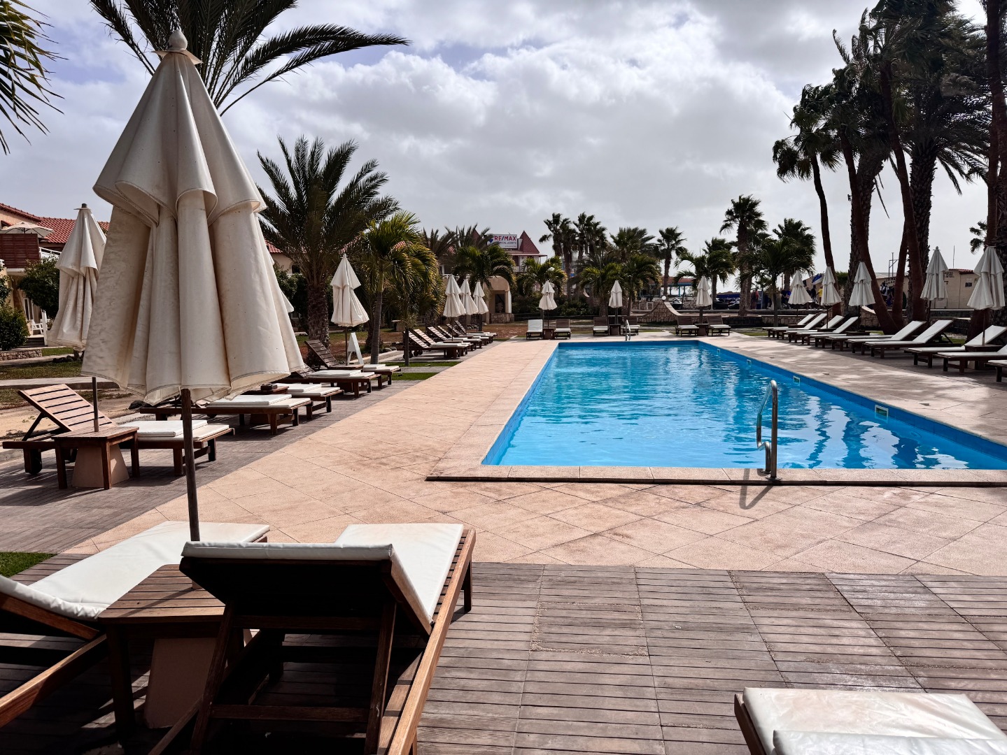 Pierwszy hotel komercyjny jaki powstał na WZP i bardzo się tym szczycą. Hotel na dużym terenie, kilka basenów, sporo zieleni, rozbudowany program animacji i tu znowu bardzo się szczycą tym, że wszystko jest w cenie tj. kije bilardowe, mini golf, tenis ziemny i stołowy itp. Hotel urządzony w kolonialnym stylu, bardzo ładne wnętrza, piękne i wygodne pokoje, eleganckie, całość bardzo zadbana. W hotelu jest część executive tylko dla dorosłych z osobnym basenem. Plaża hotelowa z leżakami płatnymi 20 euro/dzień, przy plaży działa Morabeza beach club gdzie oprócz bardzo dobrej restauracji jest taka oszklona przestrzeń z leżakami, fajna opcja biorąc pod uwagę jak tam wieje. W hotelu są organizowane wieczory kabowerdeńskie, jak Klienci kupują sobie taki fakultet, to właśnie tu jest realizowany. Byliśmy, jedzenie dobre, trochę muzyki na żywo, trochę lokalnych tańców, można się wybrać ale nie liczyć na fajerwerki, raczej na dobrą kolację z pokazem lokalnego folkloru. Hotel przy promenadzie, zaczyna się przy nim takie ścisłe centrum.