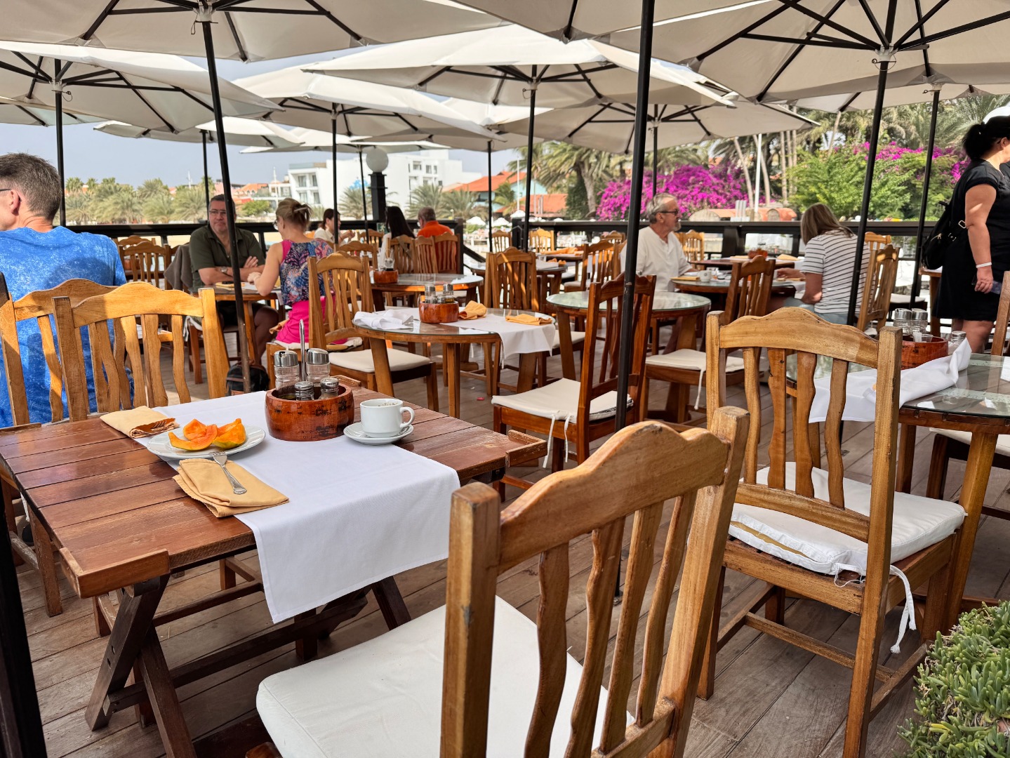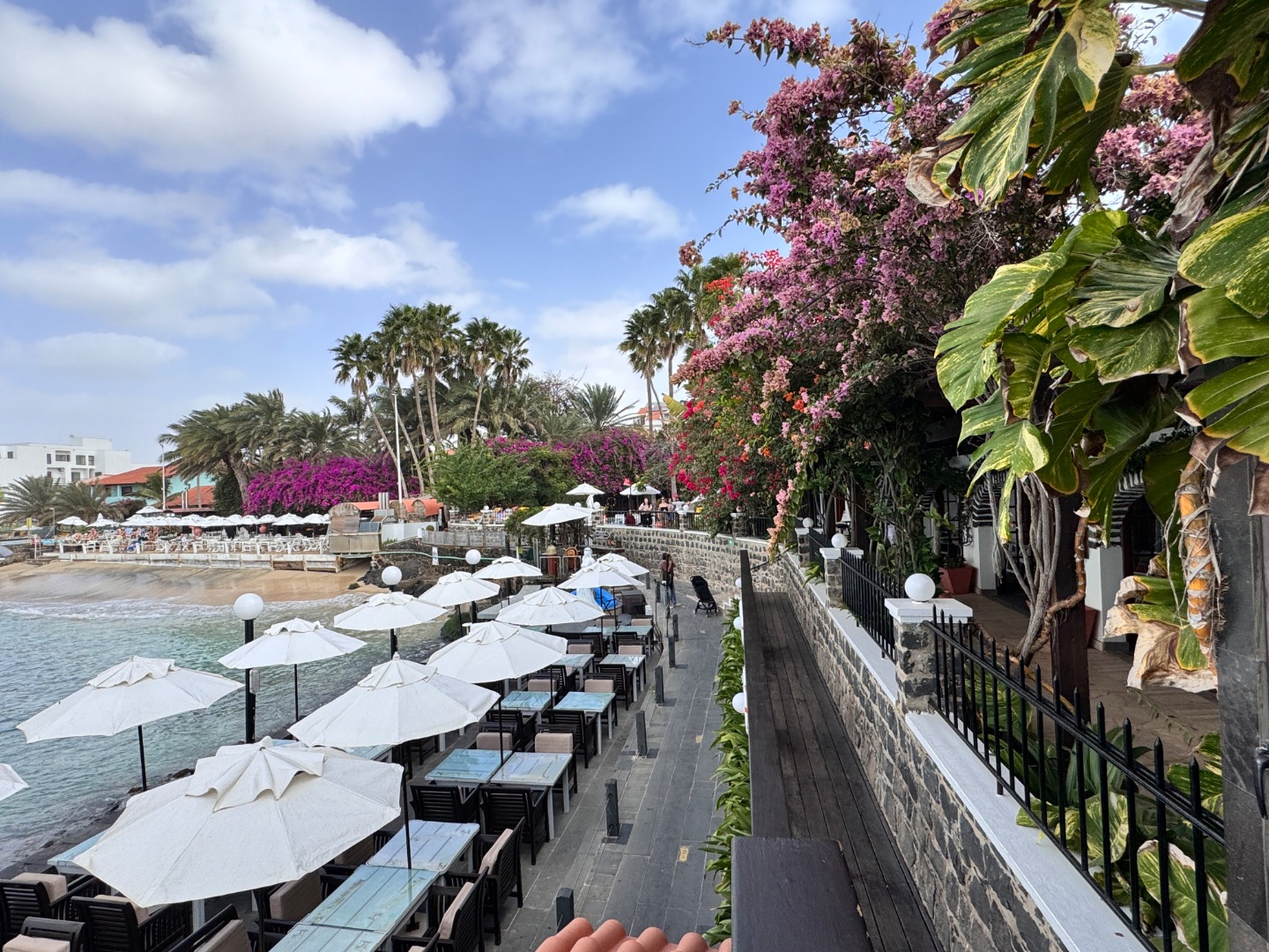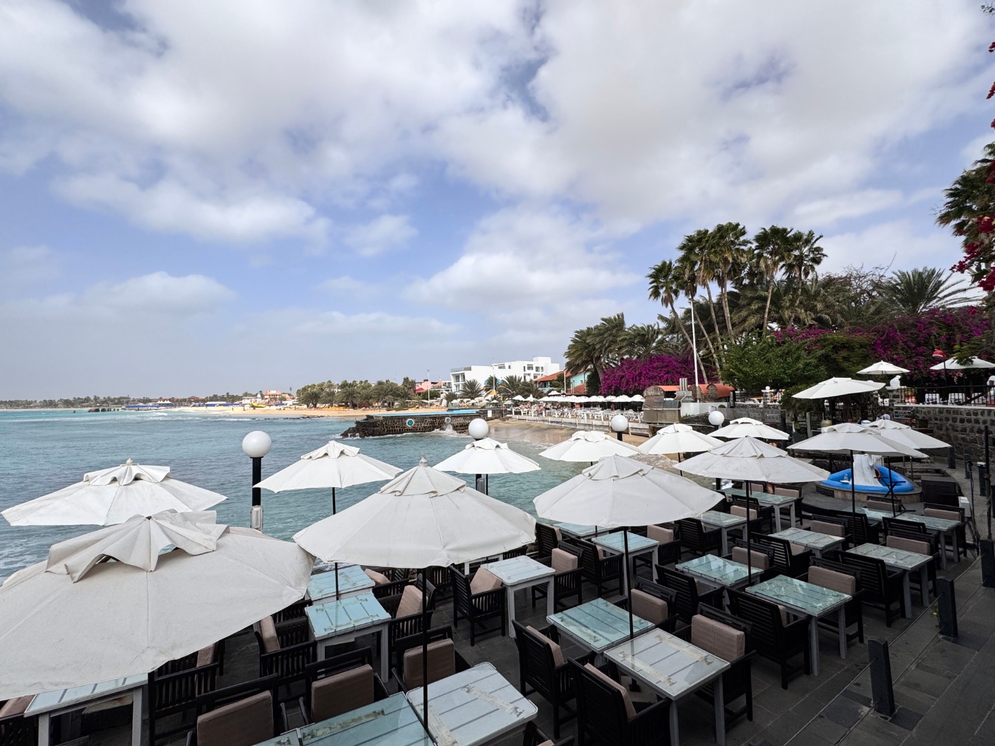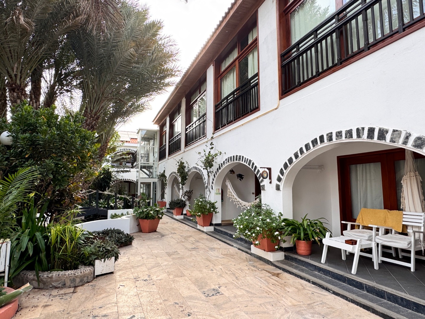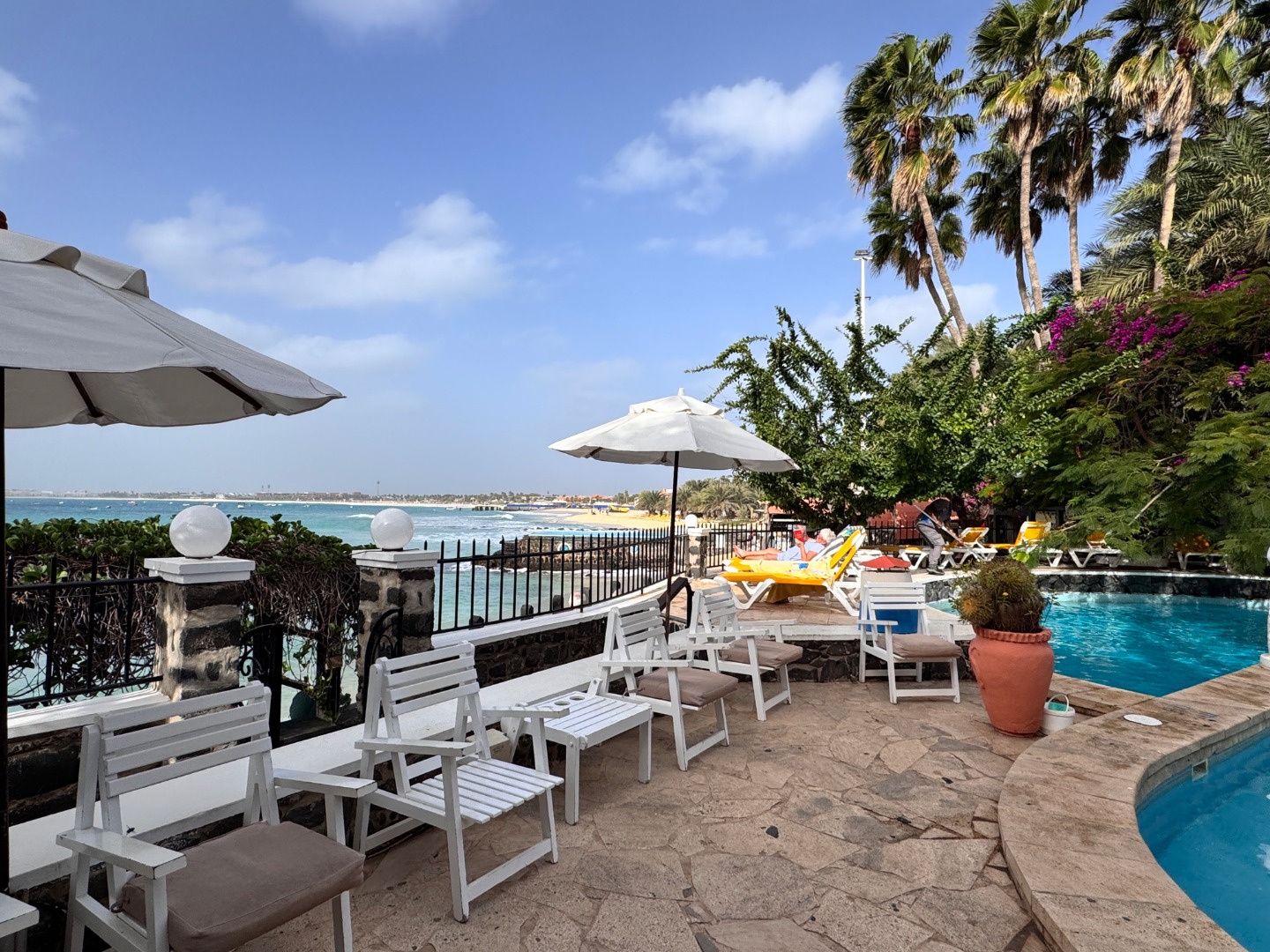 Hotel w całości należący do kabowerdeńczyków, jedyny taki na wyspie. Hotel nieduży, klimatyczny, w kolonialnym stylu, widać w nim dbałość o detale, jest dużo zieleni. W hotelu jest restauracja z kuchnią lokalną, uważana za jedną z najlepszych w Santa Maria, byliśmy na kolacji i jedzenie jest faktycznie bardzo dobre, ale nie jest tanio, wieczorami jest muzyka na żywo. Hotel ma długi odcinek plaży z bezpłatnymi leżakami, 2 baseny nieduże, w tym 1 infnity, 2 beach bary, w tym jeden dostępny również dla gości z zewnątrz. Pokoje są zadbane i ładnie urządzone, na zdjęciach standard i suite sea view. Hotel położony w centrum Santa Maria.