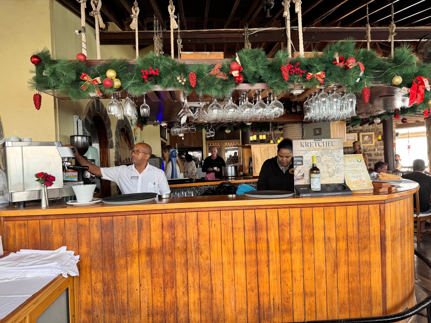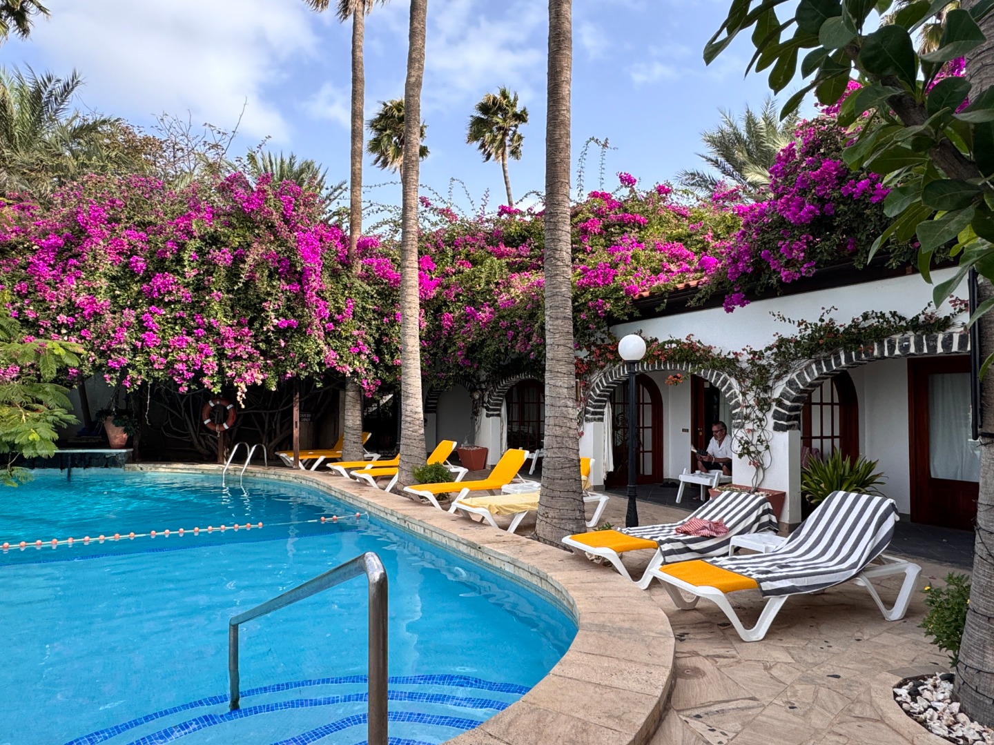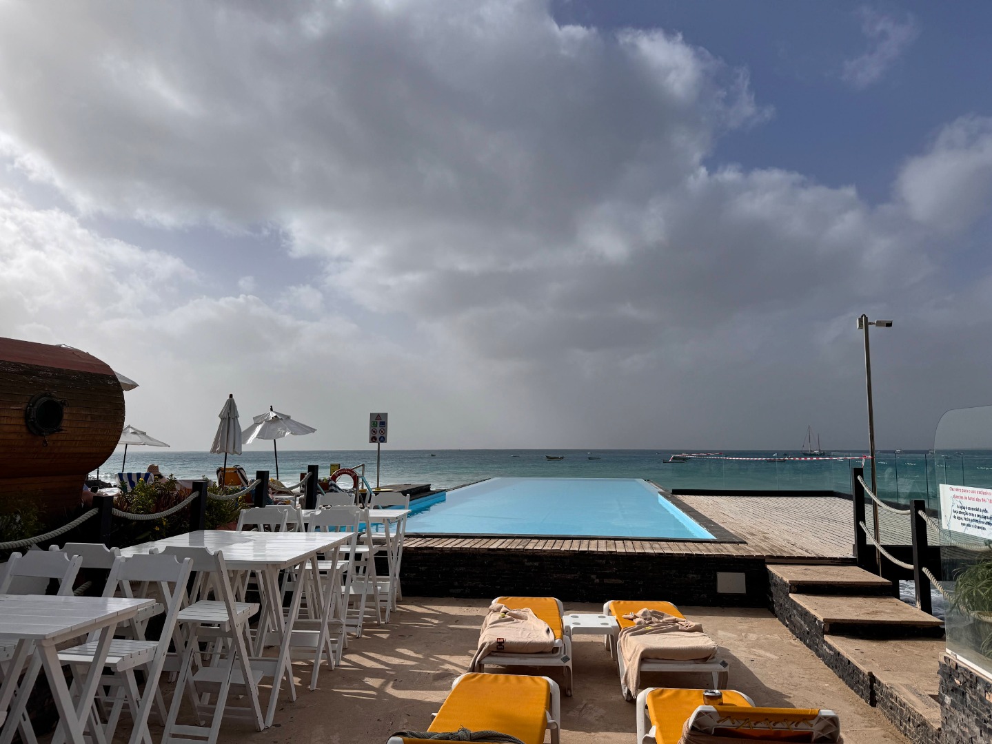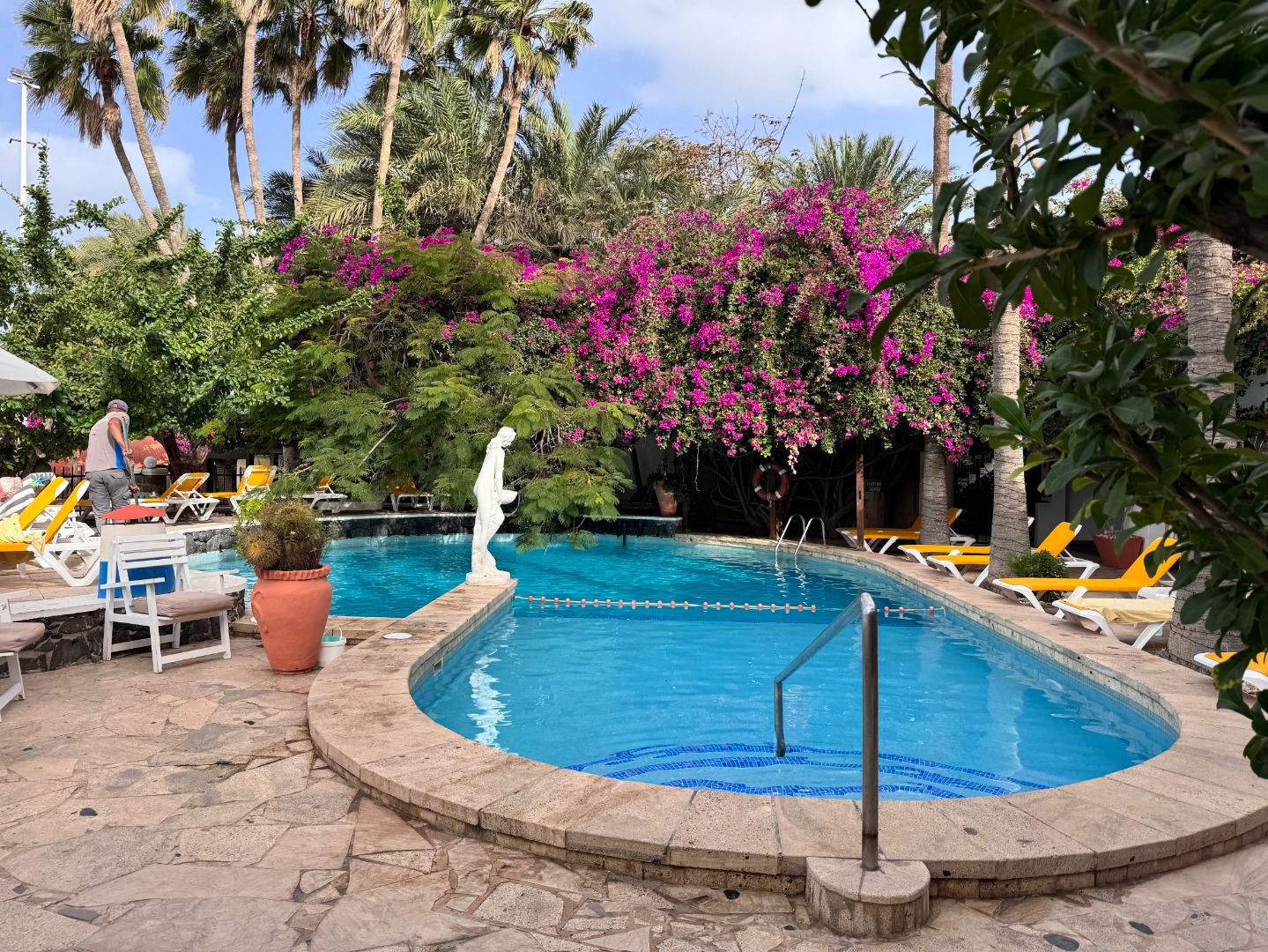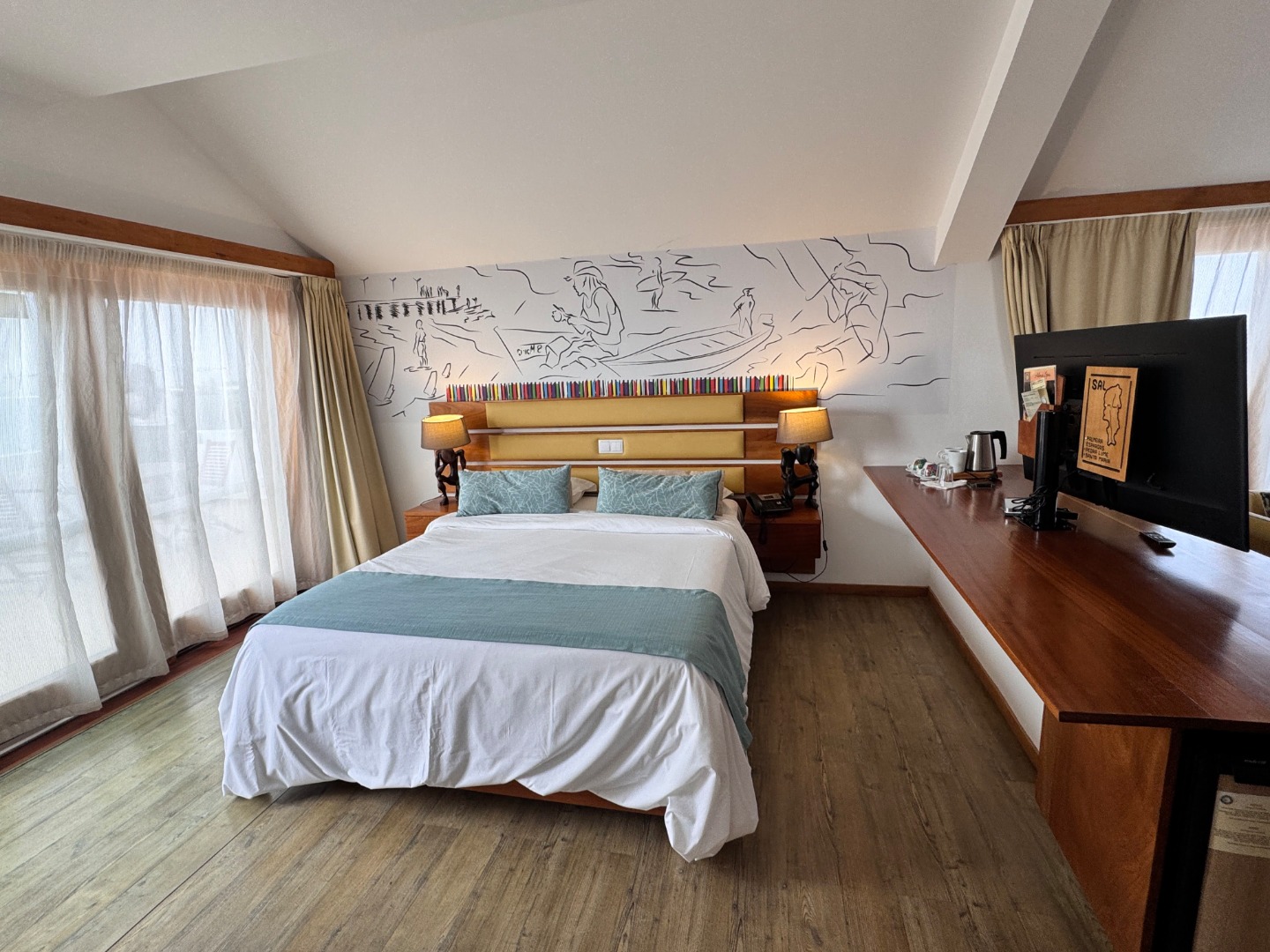 Hotel w całości należący do kabowerdeńczyków, jedyny taki na wyspie. Hotel nieduży, klimatyczny, w kolonialnym stylu, widać w nim dbałość o detale, jest dużo zieleni. W hotelu jest restauracja z kuchnią lokalną, uważana za jedną z najlepszych w Santa Maria, byliśmy na kolacji i jedzenie jest faktycznie bardzo dobre, ale nie jest tanio, wieczorami jest muzyka na żywo. Hotel ma długi odcinek plaży z bezpłatnymi leżakami, 2 baseny nieduże, w tym 1 infnity, 2 beach bary, w tym jeden dostępny również dla gości z zewnątrz. Pokoje są zadbane i ładnie urządzone, na zdjęciach standard i suite sea view. Hotel położony w centrum Santa Maria.