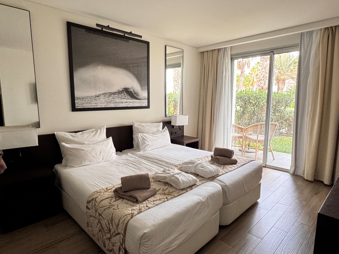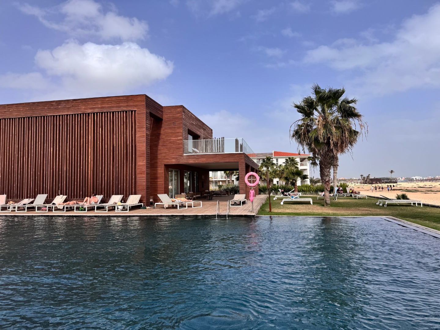 bardzo dobrej klasy hotel, spokojnie 4,5*, położony na dużym terenie, 2 duże baseny, w tym jeden przy plaży. Plaża bezpośrednio przy hotelu, leżaki w cenie, bar w ramach all inclusive. Hotel nastawiony na aktywny wypoczynek, dużo animacji i zajęć sportowych joga, pilates, sprzęty do sportów wodnych, szkoła wind i kitesurfingu, padle, siatkówka plażowa. Jedzenie w hotelu urozmaicone i dobrej jakości, sami pieką pieczywo, dbają o produkty eko, goście na miejscu bardzo zadowoleni, było tu sporo Polaków. Pokoje bardzo porządne, zadbane, ale niezbyt duże, ok 20m2. Hotel ok. 1,5 km od centrum Santa Maria.
