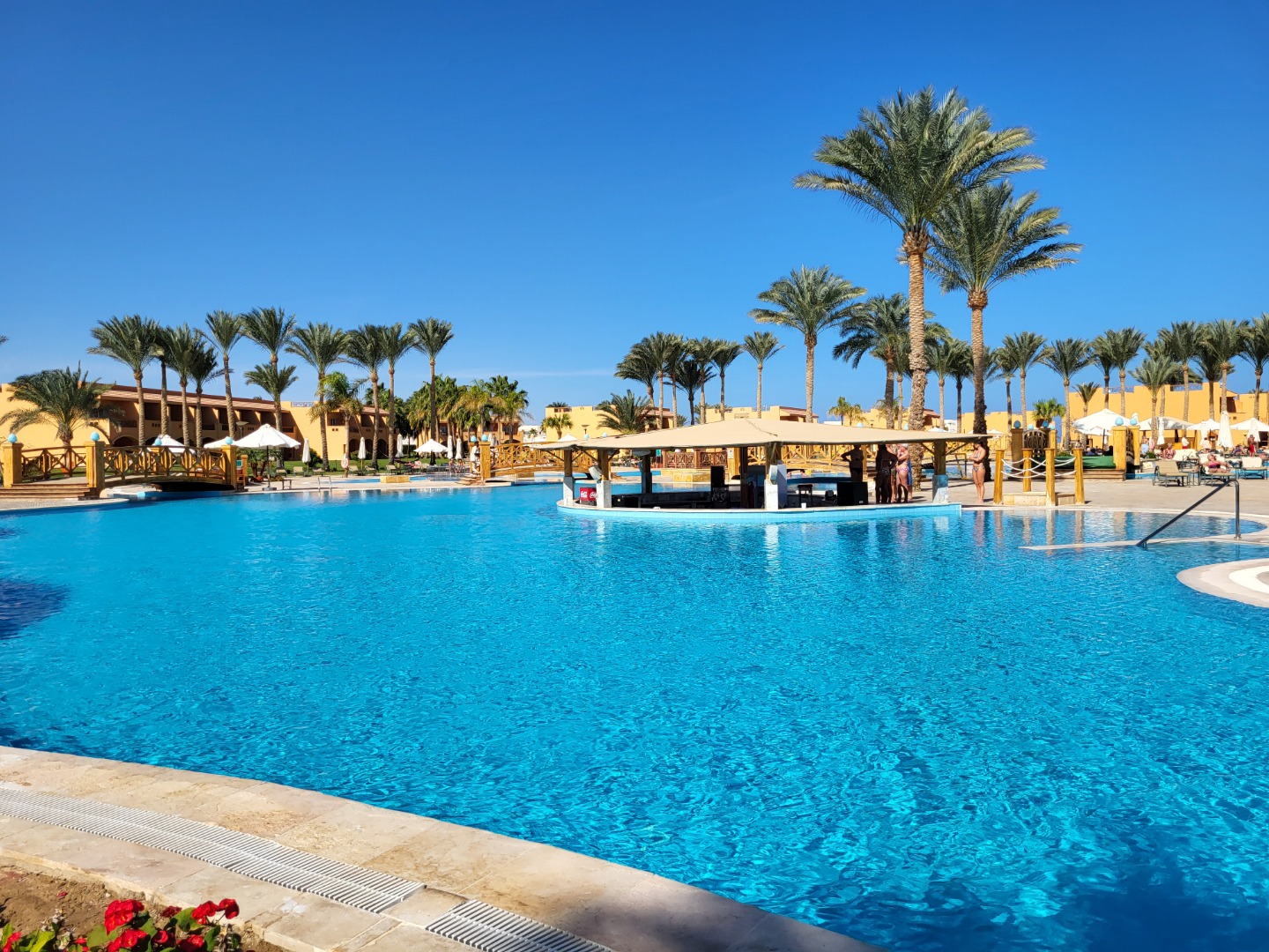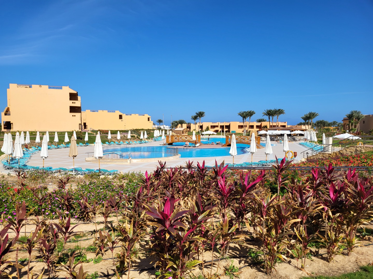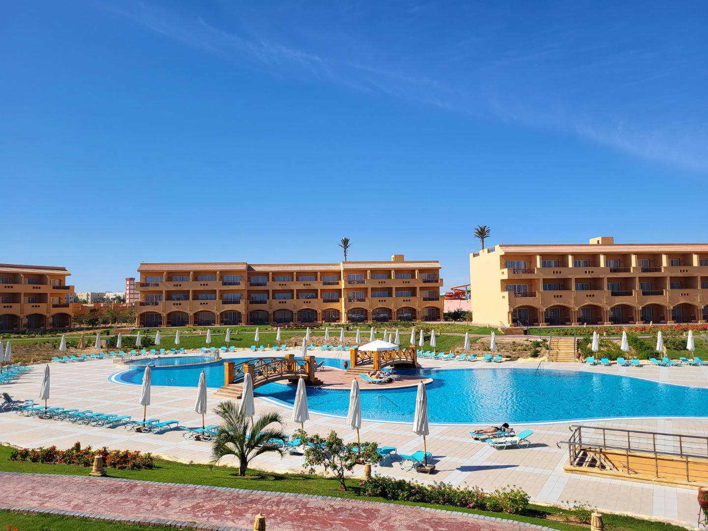 Najstarsza część z Jazów, aquapark płatny - 45 euro/dorosły i 30 euro/dziecko za tydzień. Hotel podzielony na 2 części spokojniejszą dalej od plaży i główną przy plaży. Plaża klifowa, wejście w butach i pomost do rafy, ale goście narzekają, że wiecznie czerwona flaga. Jedzenie dobre, chwalą. Wifi free, ale tylko do prędkości 1mb. W hotelu jest bankomat i sklepiki. Pokoje bardzo porządne, rodzinne 1 pomieszczenie.