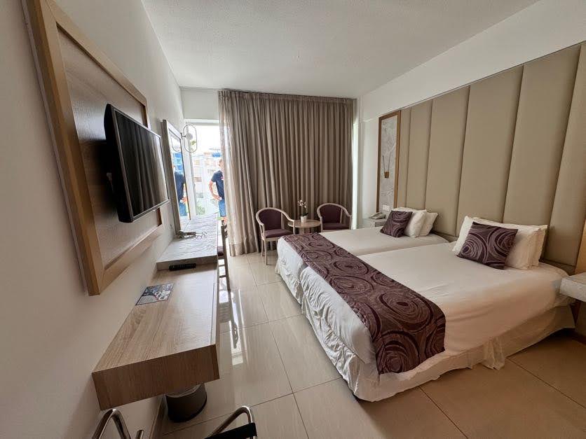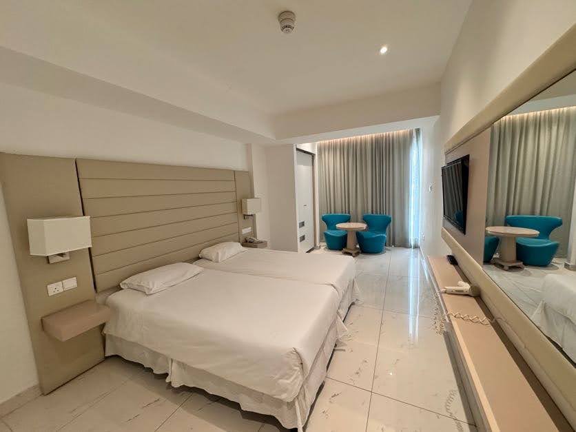 Do dyspozycji gości jest ponad 190 wygodnych pokoi, mieszczących się w dwóch budynkach. Standardowe pokoje 2-osobowe (możliwość dostawki dla osoby dorosłej lub dziecka), wyposażone w łazienkę (wanna lub prysznic, WC, suszarka do włosów), indywidualnie sterowaną klimatyzację, TV-sat, telefon, mini bar, sejf (za dodatkową opłatą, ok. 2 EUR/dzień i depozyt 5 EUR) oraz balkon lub taras.