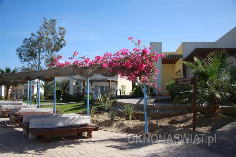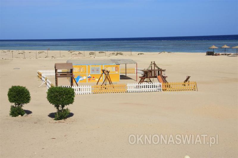 Plaża hotelowa, piaszczysto-żwirkowa, łagodne zejście do morza, w pobliżu brzegu rafa koralowa, zalecane obuwie ochronne, pomost, bezpośrednio przy hotelu (do 200 m, w zależności od zakwaterowania), przejście przez teren hotelu, bezpłatne parasole, leżaki i materace.