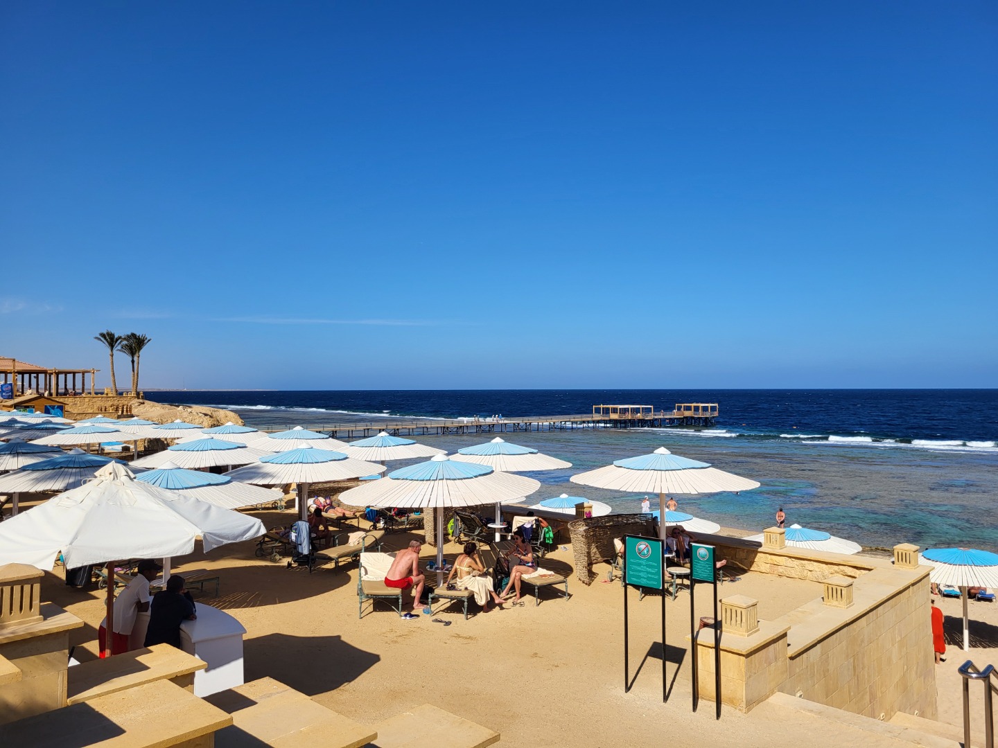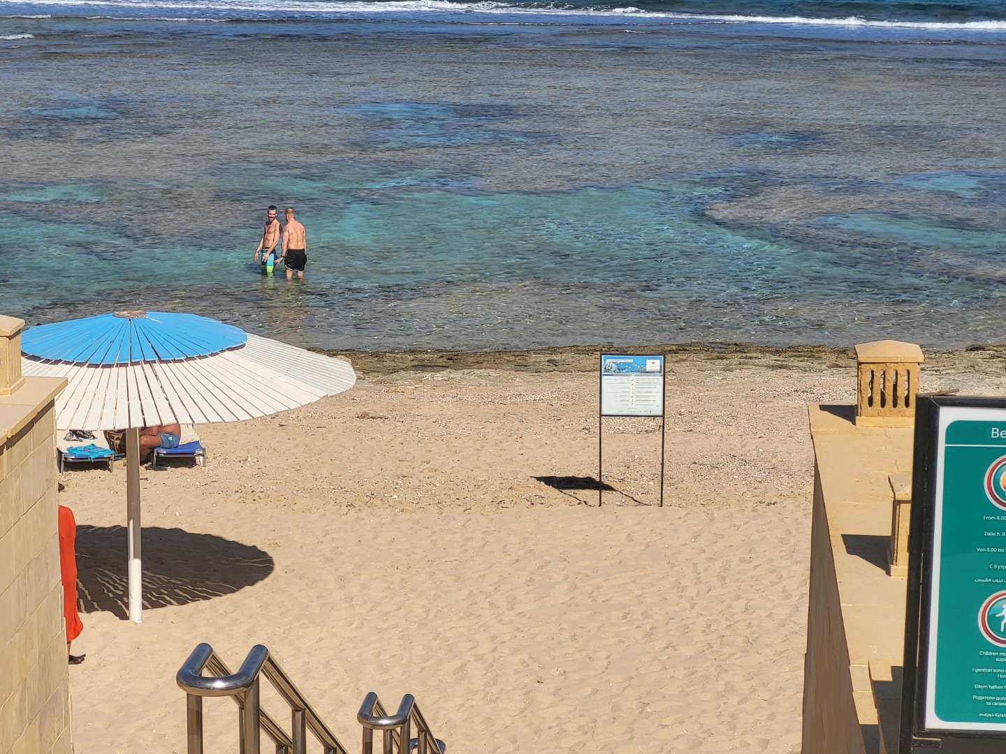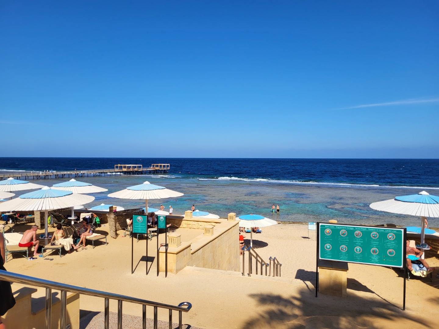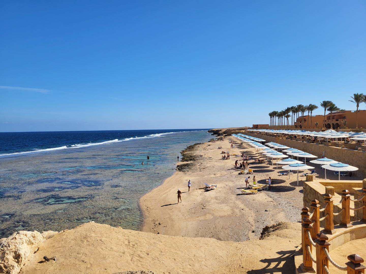Najstarsza część z Jazów, aquapark płatny - 45 euro/dorosły i 30 euro/dziecko za tydzień. Hotel podzielony na 2 części spokojniejszą dalej od plaży i główną przy plaży. Plaża klifowa, wejście w butach i pomost do rafy, ale goście narzekają, że wiecznie czerwona flaga. Jedzenie dobre, chwalą. Wifi free, ale tylko do prędkości 1mb. W hotelu jest bankomat i sklepiki. Pokoje bardzo porządne, rodzinne 1 pomieszczenie.