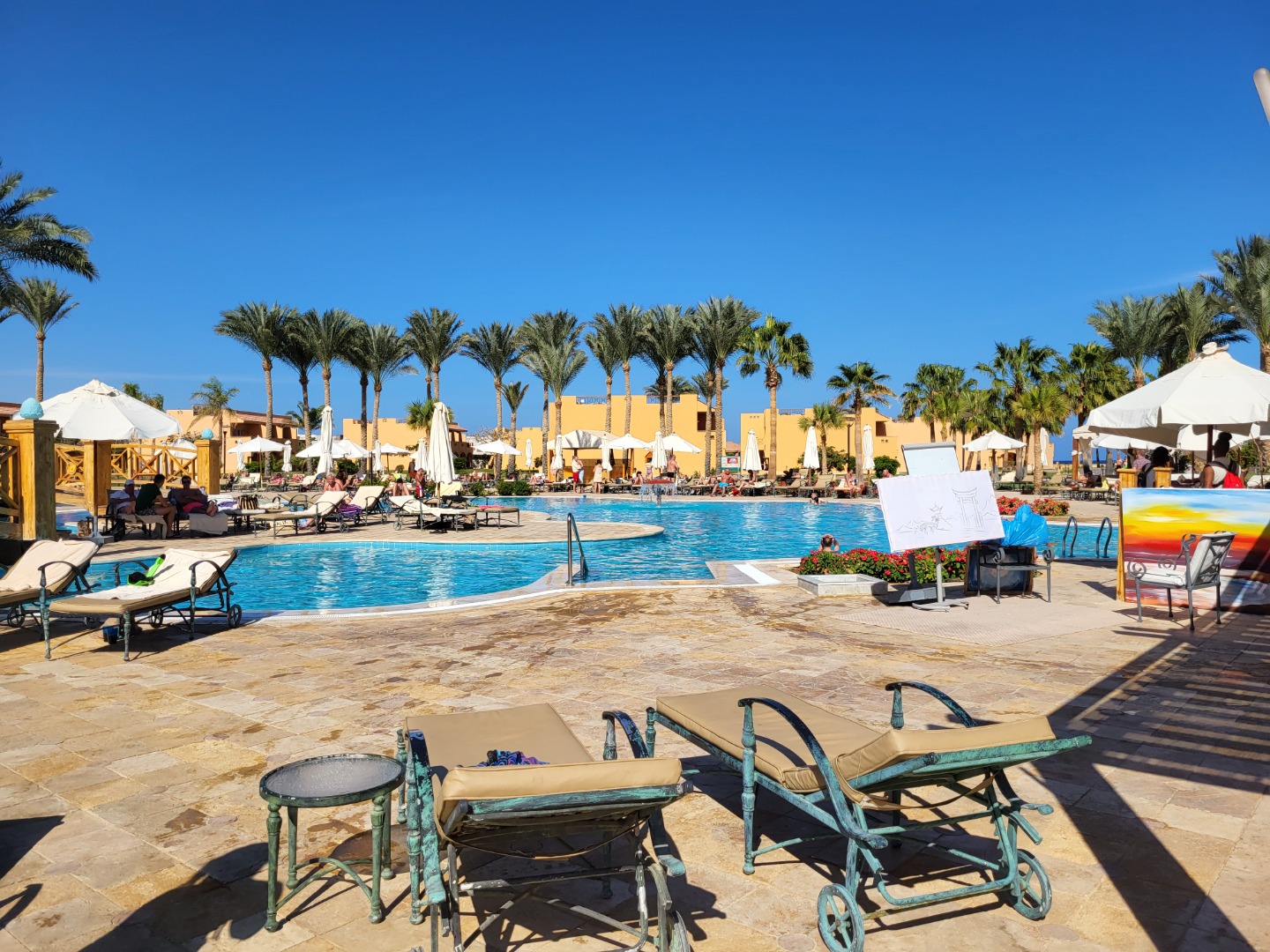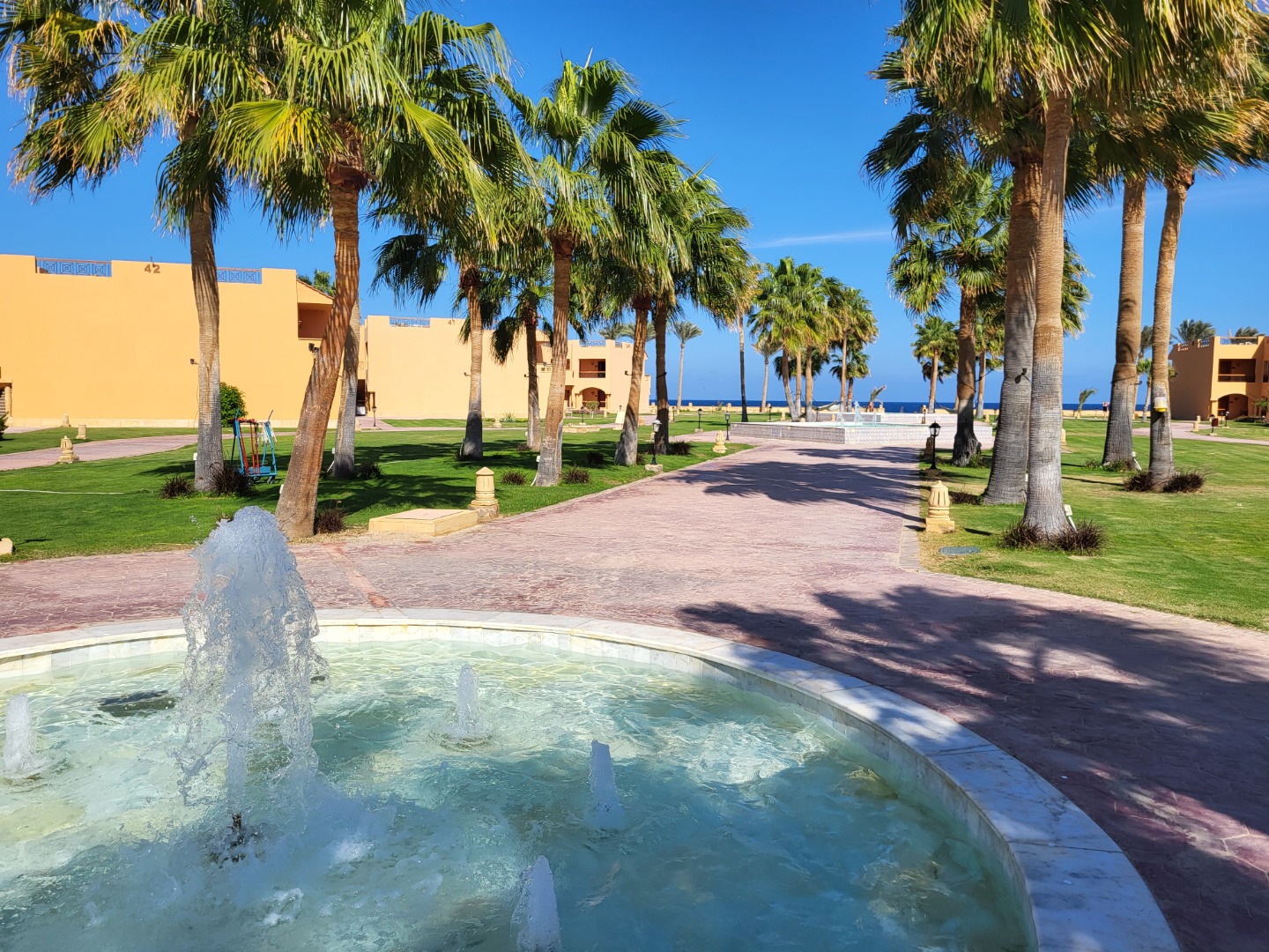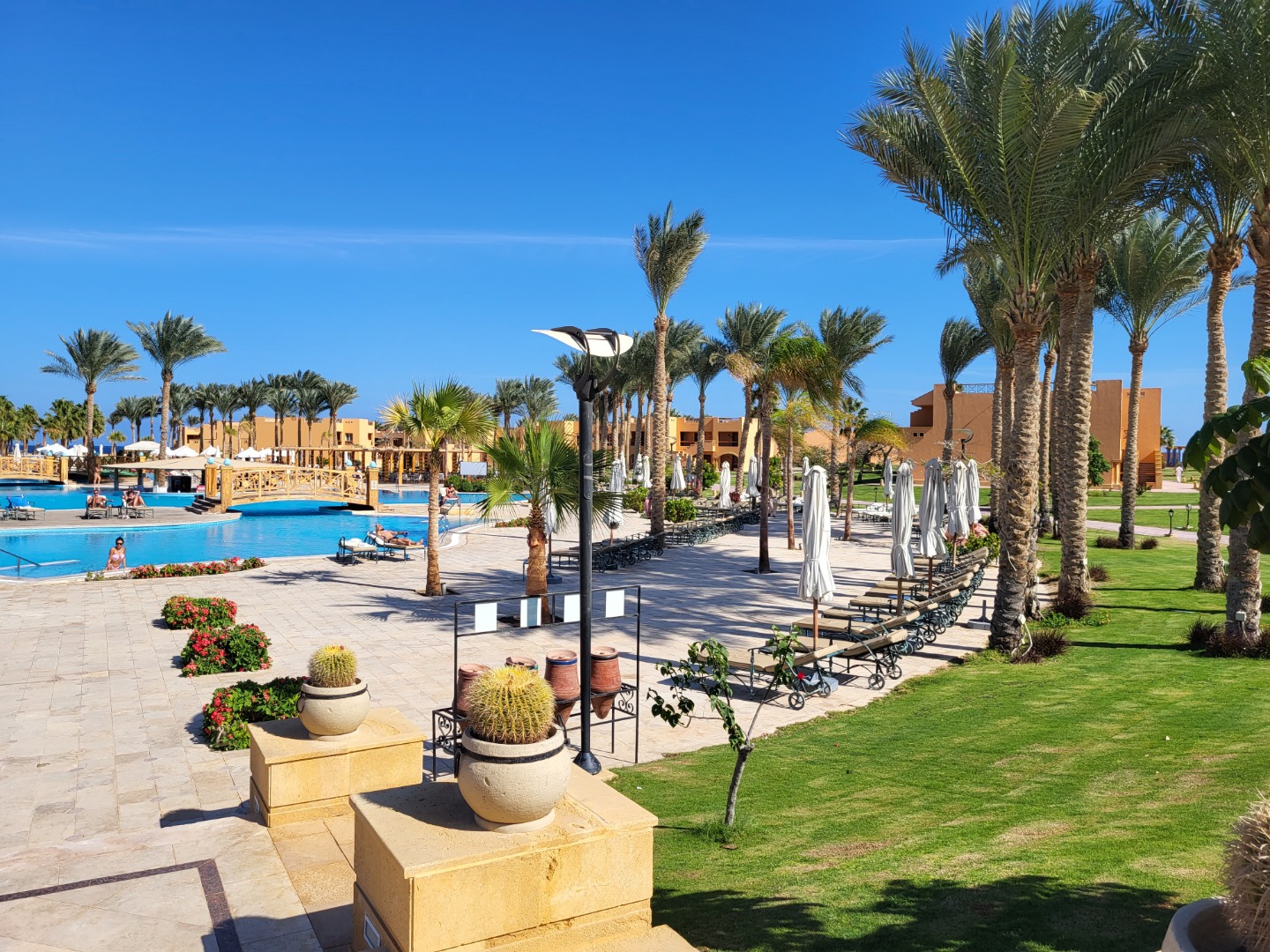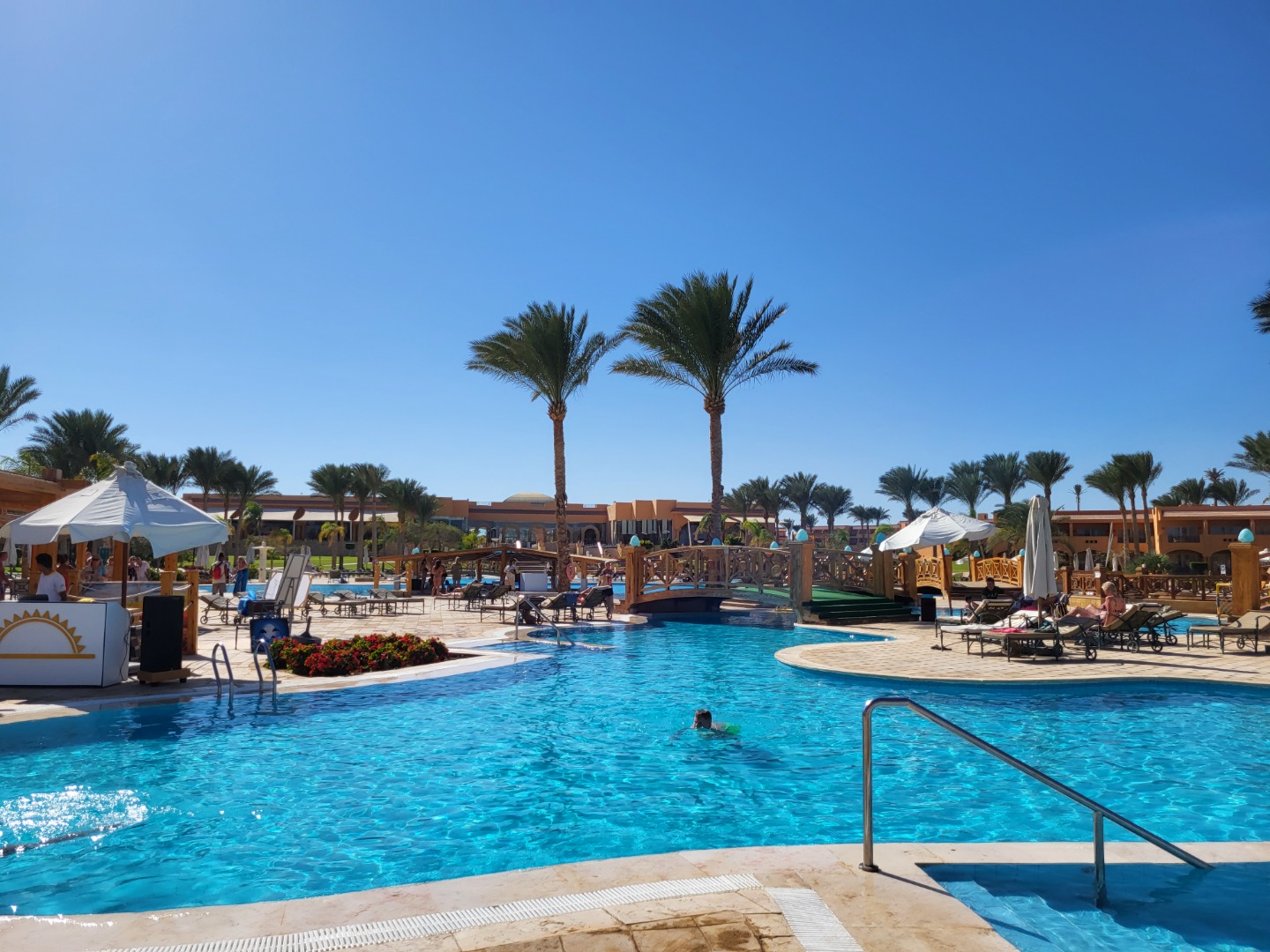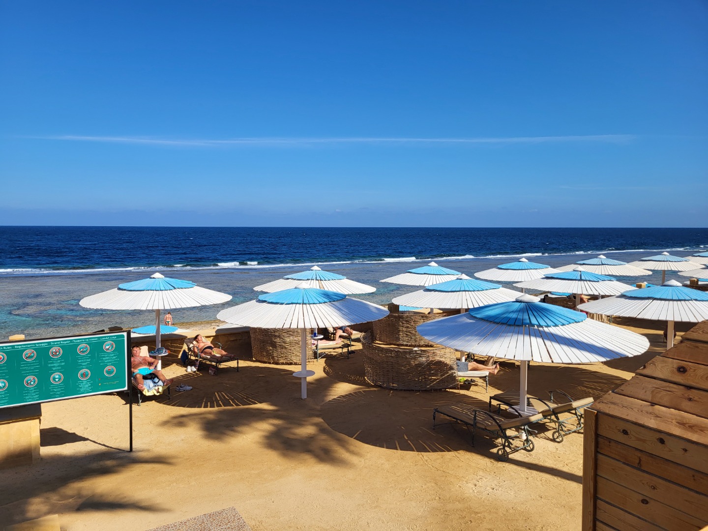 Najstarsza część z Jazów, aquapark płatny - 45 euro/dorosły i 30 euro/dziecko za tydzień. Hotel podzielony na 2 części spokojniejszą dalej od plaży i główną przy plaży. Plaża klifowa, wejście w butach i pomost do rafy, ale goście narzekają, że wiecznie czerwona flaga. Jedzenie dobre, chwalą. Wifi free, ale tylko do prędkości 1mb. W hotelu jest bankomat i sklepiki. Pokoje bardzo porządne, rodzinne 1 pomieszczenie.