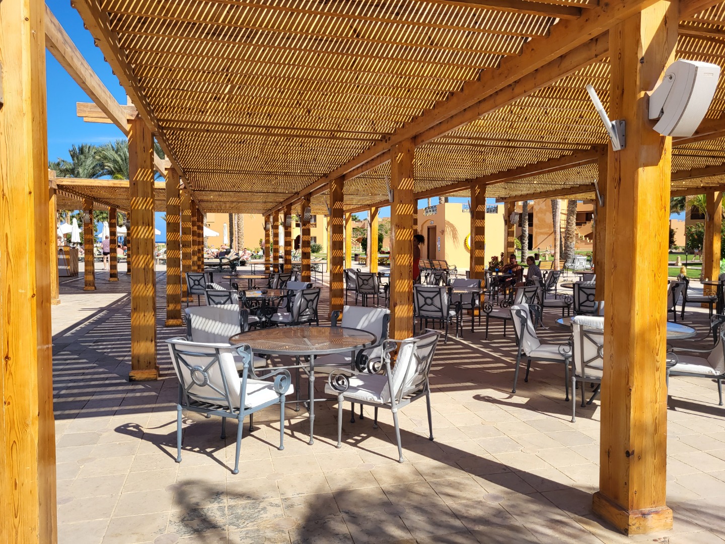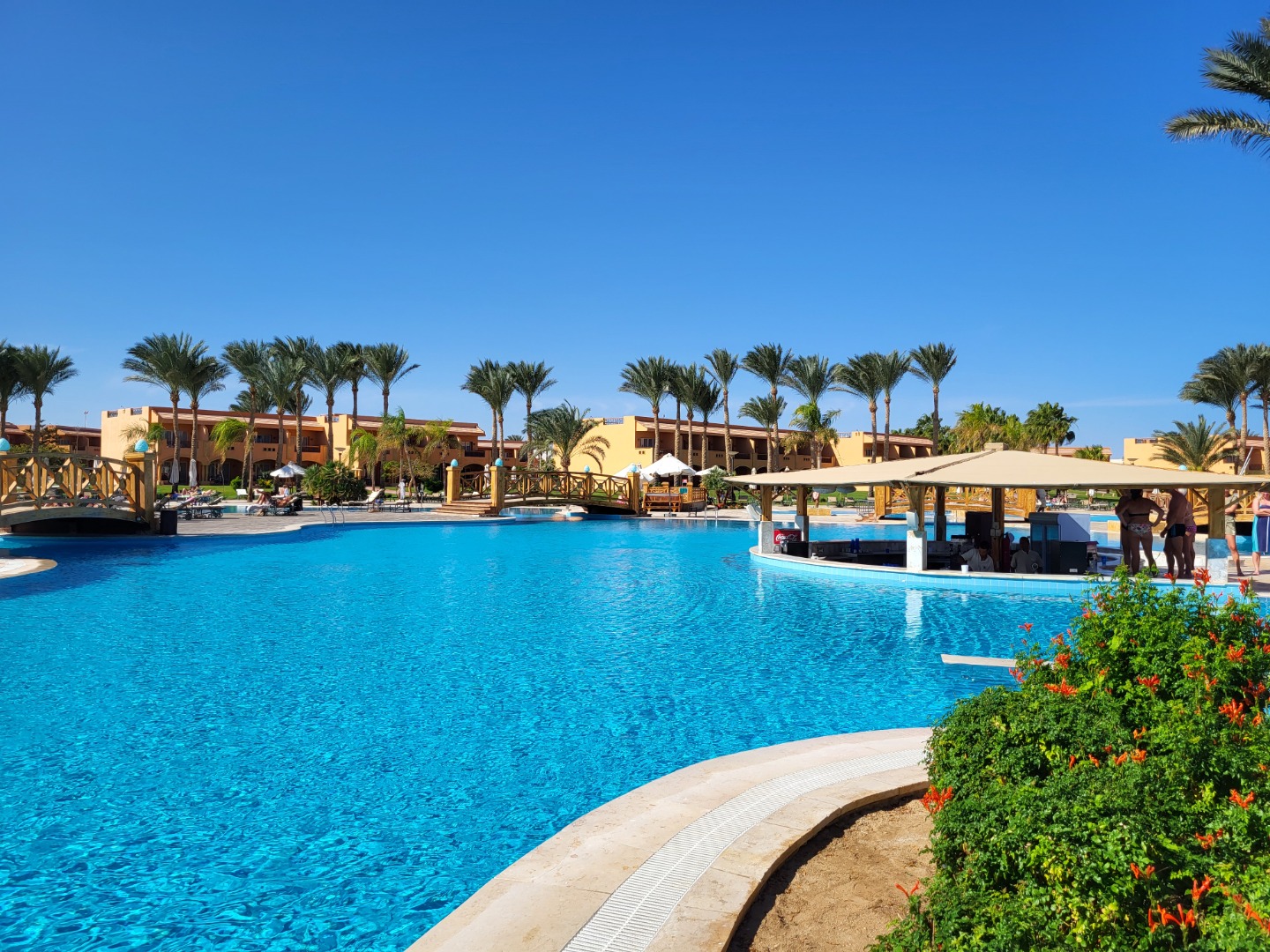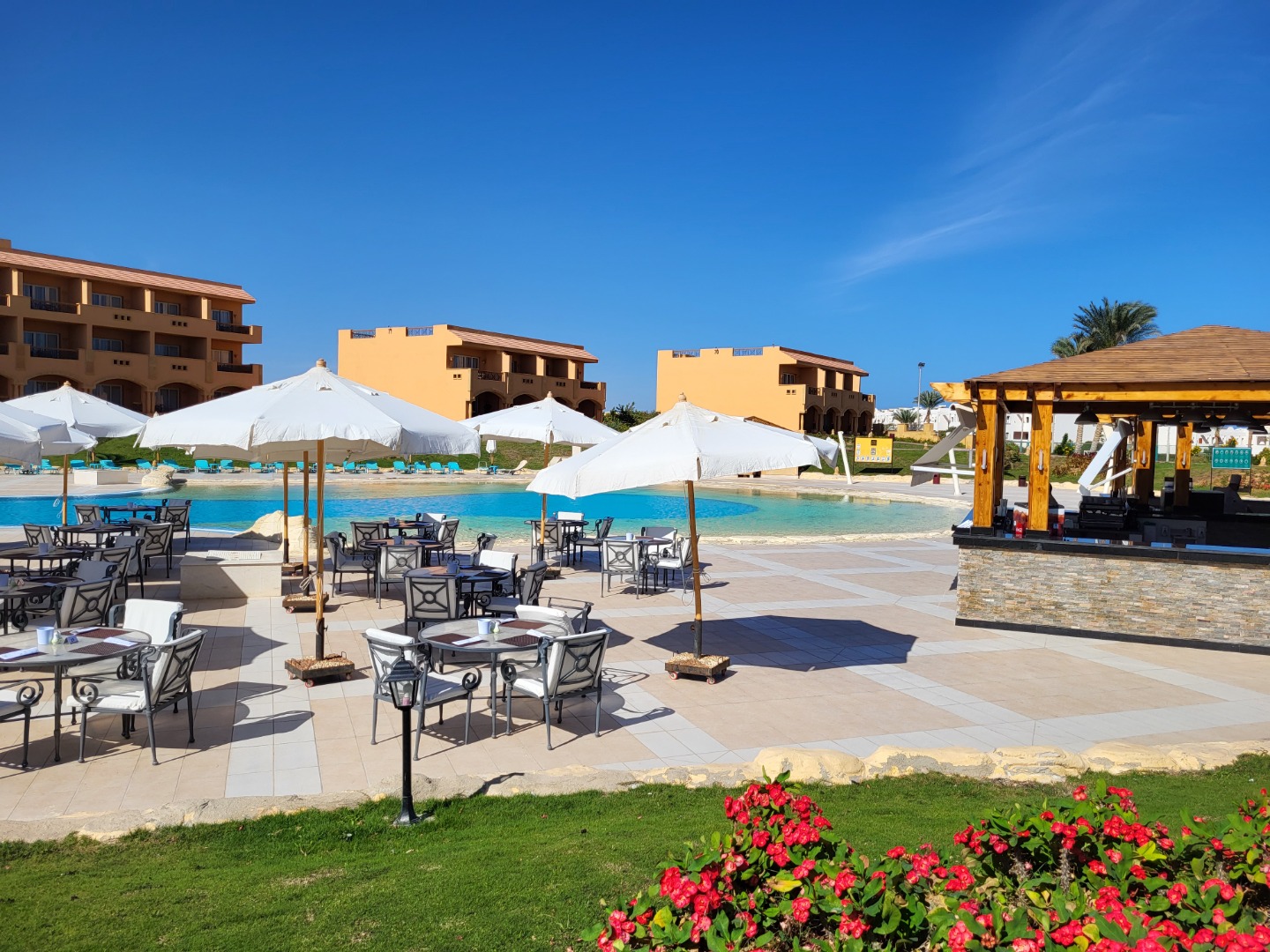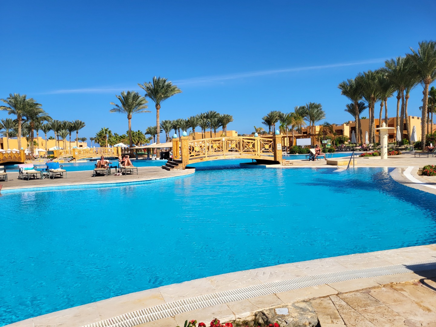 Najstarsza część z Jazów, aquapark płatny - 45 euro/dorosły i 30 euro/dziecko za tydzień. Hotel podzielony na 2 części spokojniejszą dalej od plaży i główną przy plaży. Plaża klifowa, wejście w butach i pomost do rafy, ale goście narzekają, że wiecznie czerwona flaga. Jedzenie dobre, chwalą. Wifi free, ale tylko do prędkości 1mb. W hotelu jest bankomat i sklepiki. Pokoje bardzo porządne, rodzinne 1 pomieszczenie.
