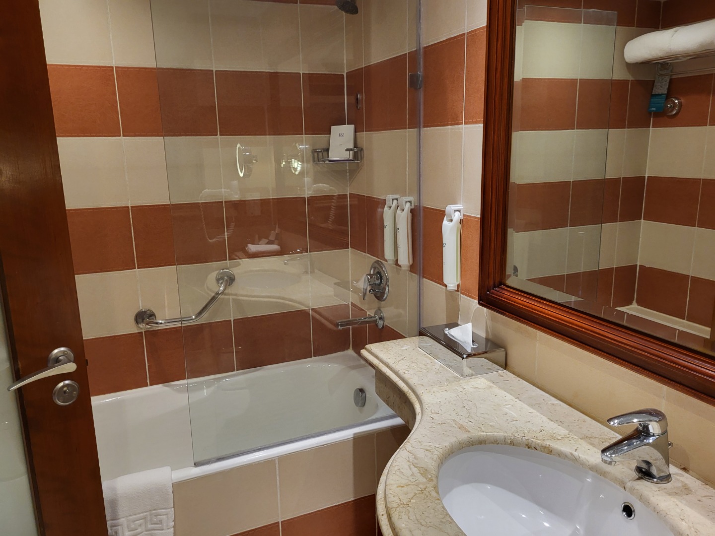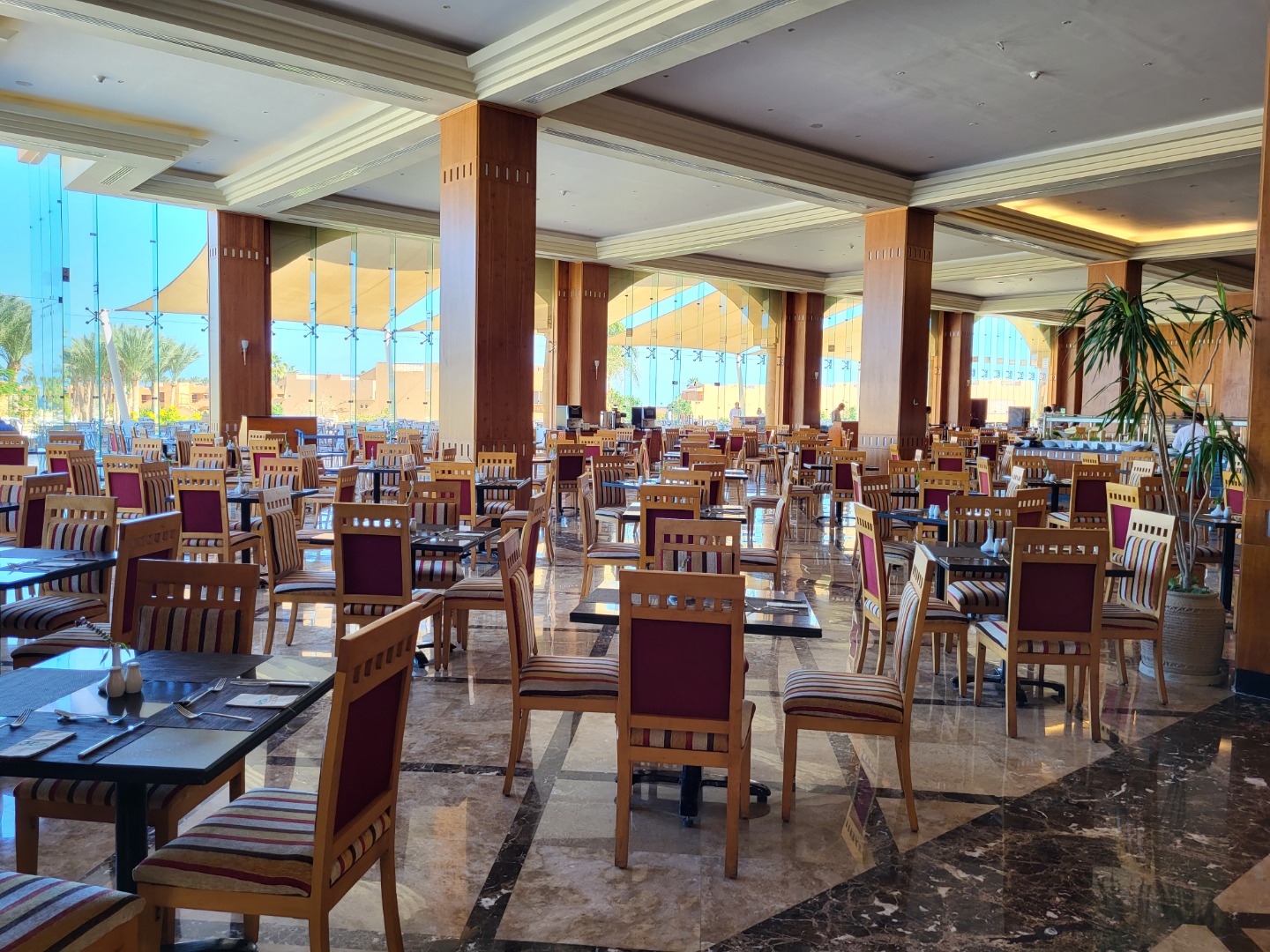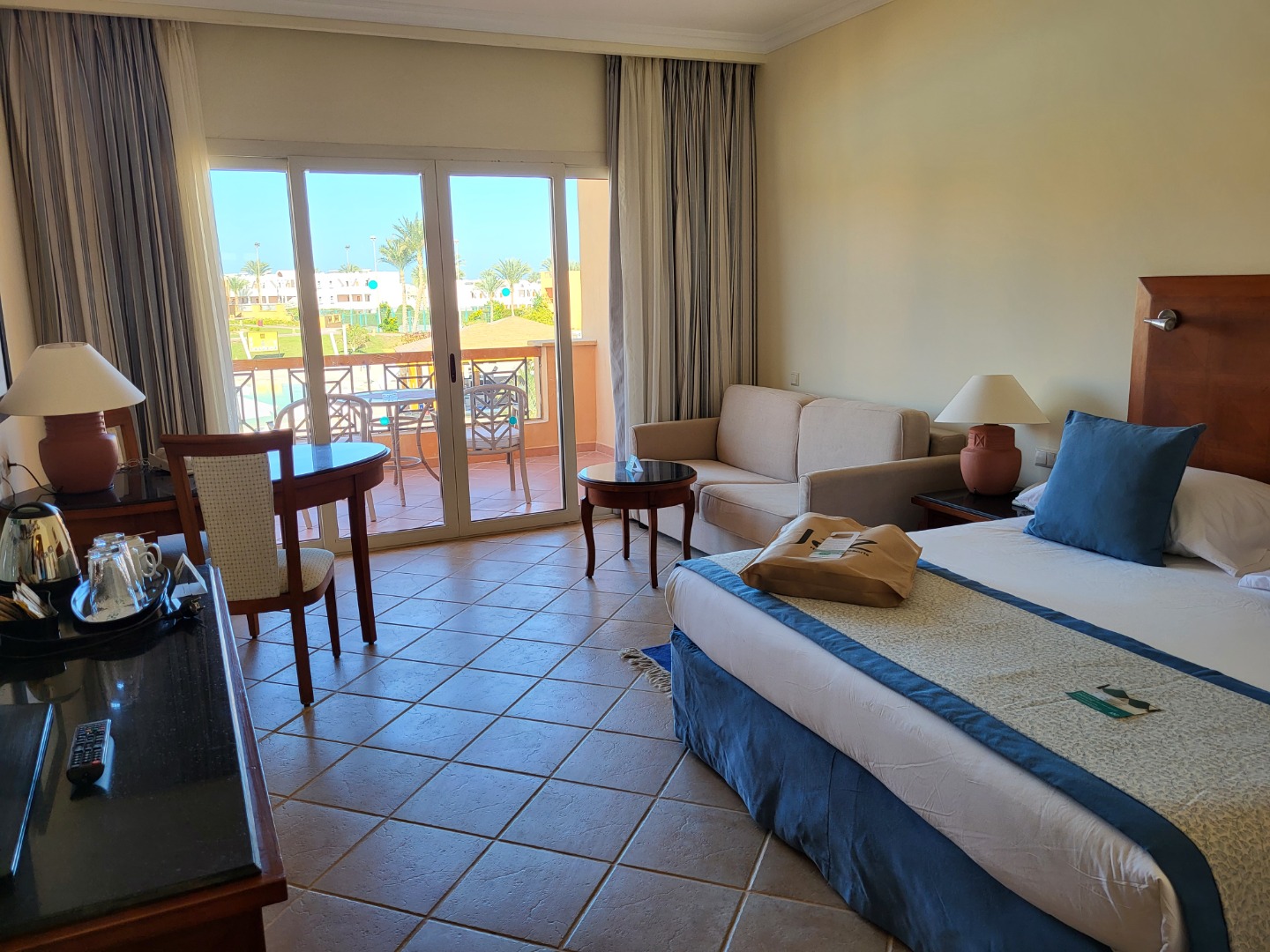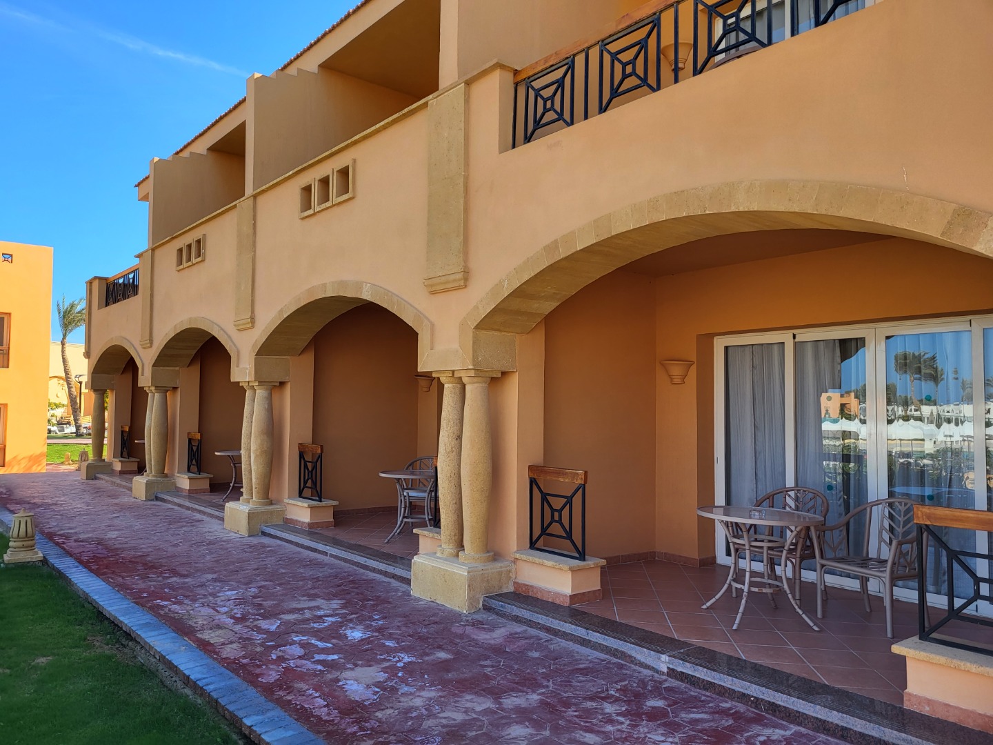 Najstarsza część z Jazów, aquapark płatny - 45 euro/dorosły i 30 euro/dziecko za tydzień. Hotel podzielony na 2 części spokojniejszą dalej od plaży i główną przy plaży. Plaża klifowa, wejście w butach i pomost do rafy, ale goście narzekają, że wiecznie czerwona flaga. Jedzenie dobre, chwalą. Wifi free, ale tylko do prędkości 1mb. W hotelu jest bankomat i sklepiki. Pokoje bardzo porządne, rodzinne 1 pomieszczenie.