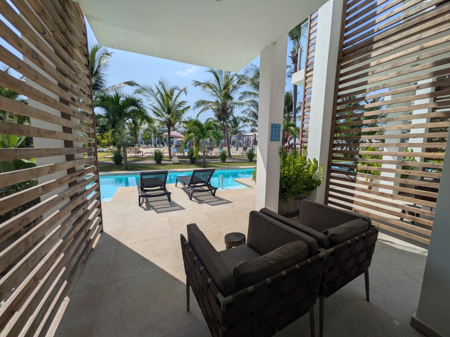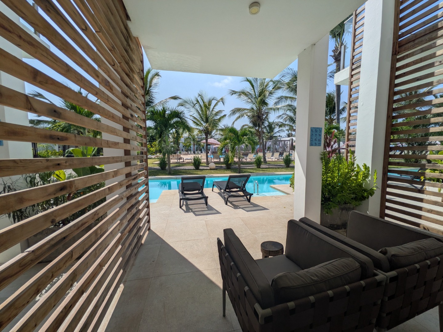 Hotel dysponuje 140 pokojami różnego typu rozlokowanymi w 2-kondygnacyjnych budynkach. Komfortowo urządzone 2-osobowe pokoje typu Classic Suite o pow. ok. 44m2 z optycznie wydzieloną częścią dzienną, wyposażone są w łazienkę (prysznic, WC, suszarka do włosów), klimatyzację, TV-Sat., sejf, mini lodówkę, czajnik, szlafrok i kapcie kąpielowe oraz balkon lub taras. W ofercie pokoje z widokiem na okolicę, basen lub ocean. Pokoje typu Prime Pool Suite wyposażone jak pokoje Classic Suite, dodatkowo posiadają taras z leżakami, z widokiem na ocean lub basen, z bezpośrednim dostępem do basenu dzielonego z 10 lub 18 apartamentami na poziomie ogrodu. Hotel nie posiada pokoi przystosowanych dla osób z niepełnosprawnościami.