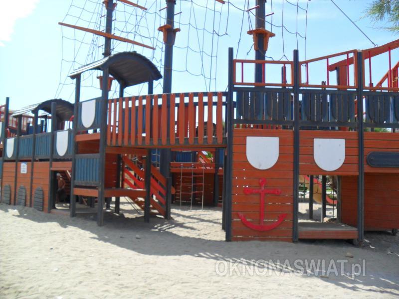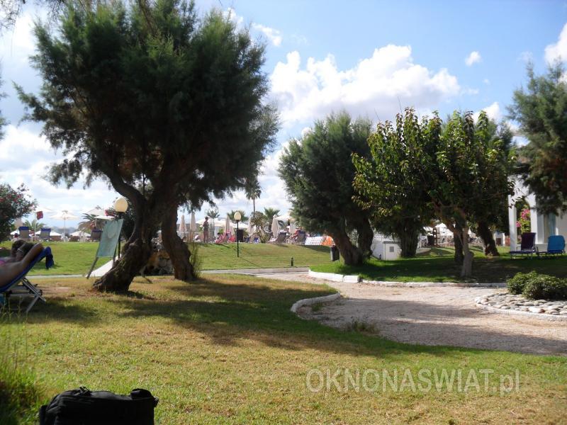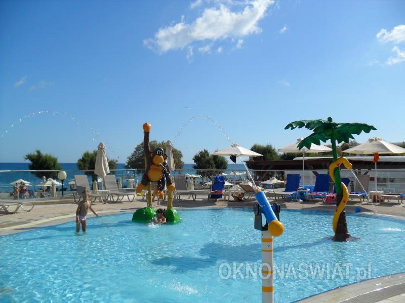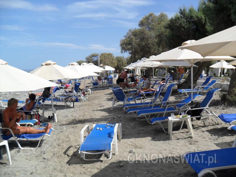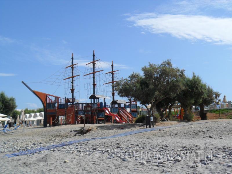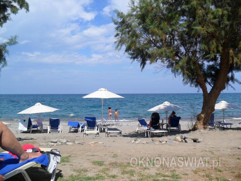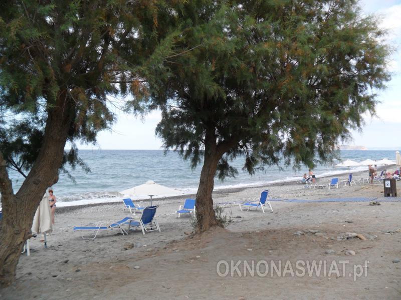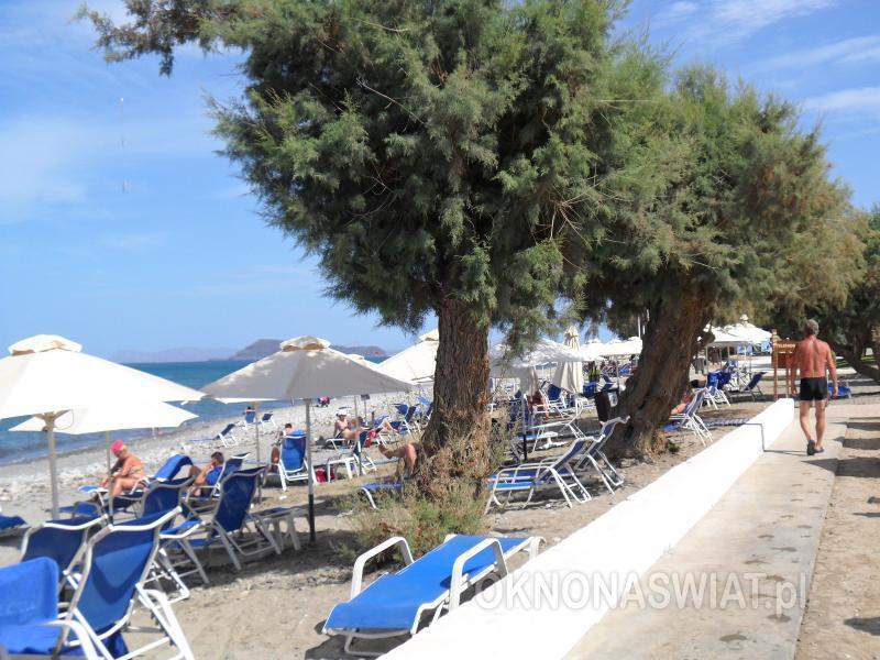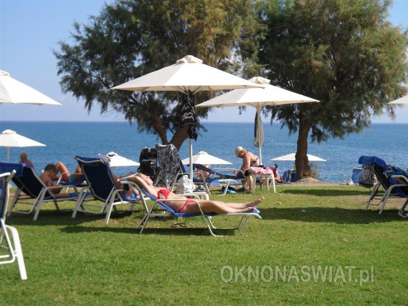 hotelowa, żwirkowa, łagodne zejście do morza, dno miejscami kamieniste, wyróżniona certyfikatem Błękitna Flaga; bezpośrednio przy hotelu, bezpłatne parasole, leżaki i ręczniki.