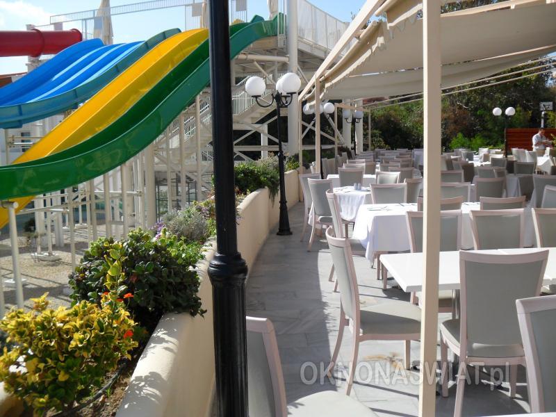 śniadanie (7.00-10.00), obiad (12.30-15.00), kolacja (19.00-21.30) w formie bufetu w wyznaczonej restauracji; wieczorny bufet dla dzieci (18.30-20.30); przekąski ciepłe i zimne (10.00-24.00; poza godzinami posiłków); kawa, herbata i ciastka (15.00-18.00); lody (10.00-21.30); napoje bezalkoholowe i lokalne napoje alkoholowe: piwo, wino, likiery, koktajle (10.00-24.00) w wyznaczonym barze; wymagane noszenie opasek all inclusive