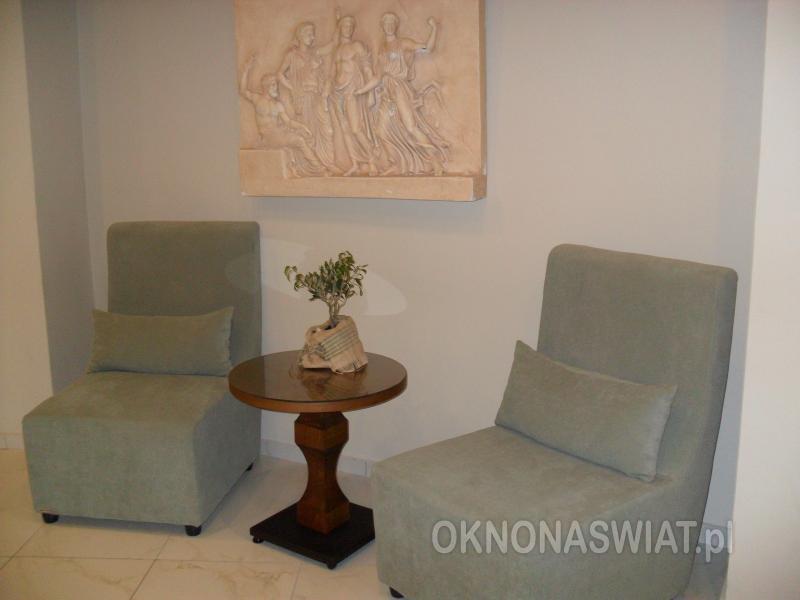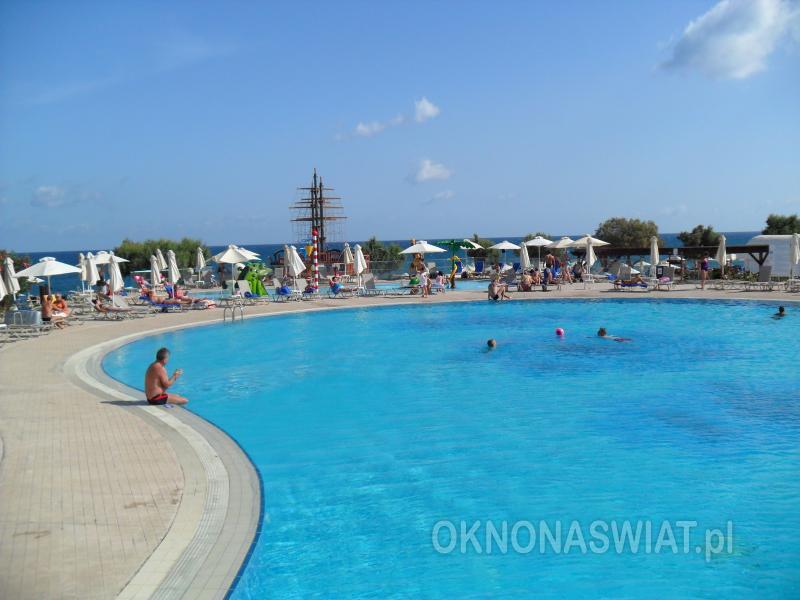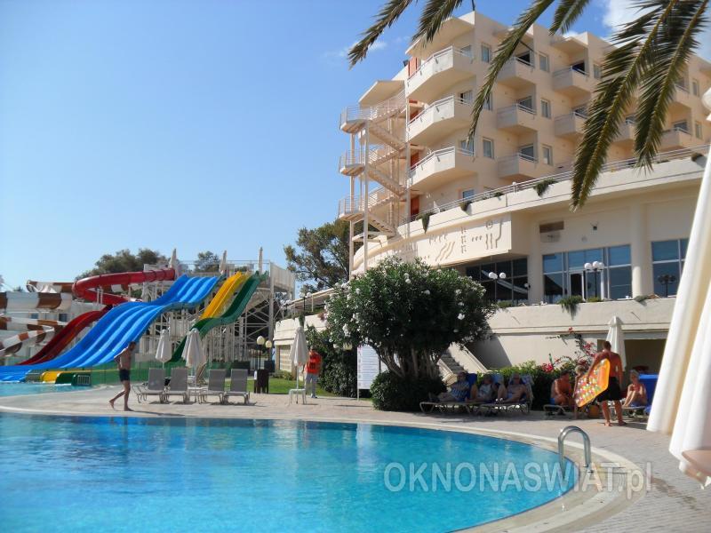 czterogwiazdkowy, ostatnia renowacja w 2010 r., 420 pokoi, budynek główny i bungalowy, bungalowy - 1 piętro, budynek główny - 4 piętra, 2 windy w budynku głównym; przestronne i eleganckie lobby, całodobowa recepcja, restauracje: główna Samaria - dania w formie bufetu, dostępne foteliki i menu dla dzieci, dania wegetariańskie, Dedalos przy basenie - bufet lub à la carte, chińska - bufet, pizzeria - bufet; 3 bary: Dionyssos w lobby, bar na plaży, disco-club; kącik telewizyjny, kantor, mini-market, jubiler, parking; sala konferencyjna dla 150 osób, taras z widokiem na morze, ogród; za opłatą: punkt internetowy (ok. 2 EUR/godz), internet bezprzewodowy w lobby, sejf w recepcji, lekarz na wezwanie, pralnia; akceptowane karty kredytowe: Visa, MasterCard, American Express, Diners Club.