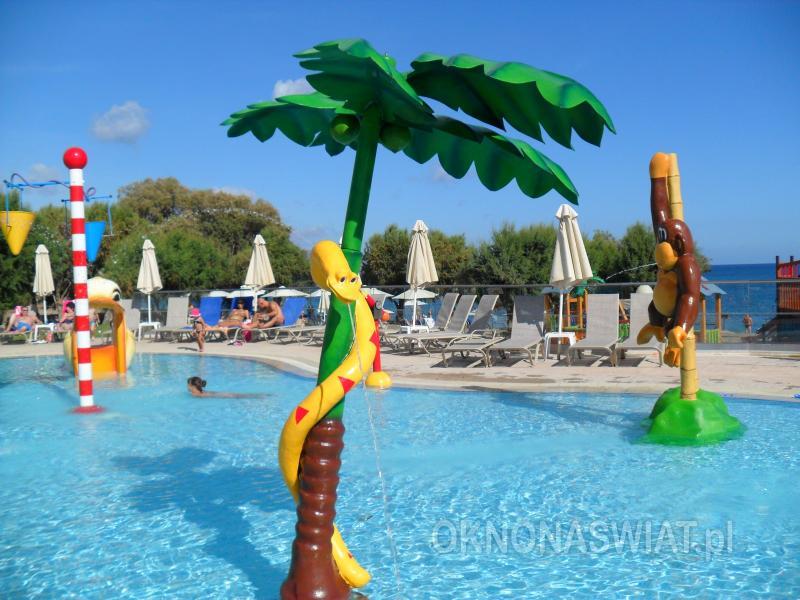 2 baseny, słodka woda, główny ok. 1550 m², gł. 1,5 m, sezonowo podgrzewany, brodzik, przy basenach bezpłatne parasole, leżaki i ręczniki; łucznictwo (od 16. roku życia), mini-golf, koszykówka, siatkówka, tenis stołowy, bule, rzutki, piłka nożna, 2 korty tenisowe (za opłatą oświetlenie i wypożyczalnia sprzętu); plac zabaw dla dzieci ze statkiem pirackim, mini-klub (4-12 lat), animacje dla dorosłych i dzieci, mini-disco, dyskoteka; za opłatą: gry elektroniczne