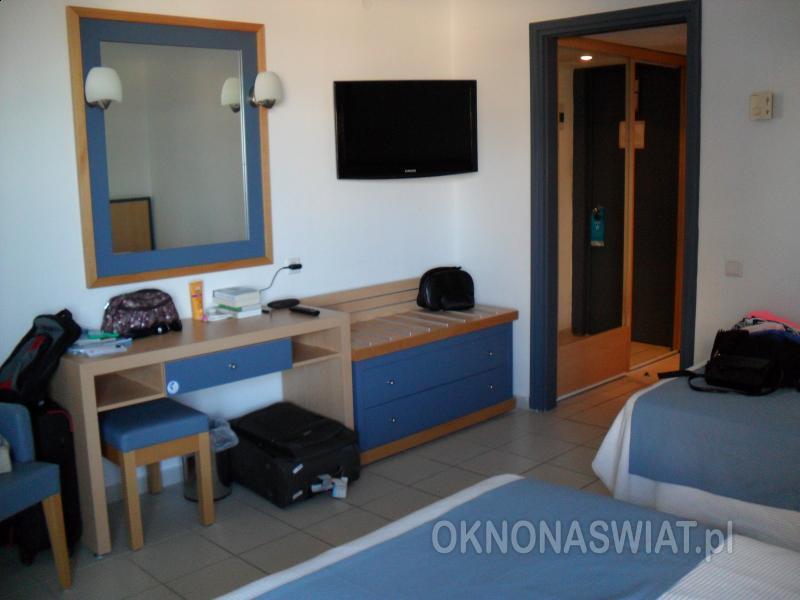 standardowy: 2-os. (możliwość 1 lub 2 dostawek), ok. 22 m², zadbany, klimatyzowany (15.06.-15.09.), łazienka (wanna lub prysznic, wc; suszarka), telewizja satelitarna, telefon, lodówka, sejf (płatny: 25 EUR/tydz.); bezpłatne łóżeczko dla dziecka do 2 lat na zamówienie przed przyjazdem; balkon lub taras (stolik i krzesełka); widok na morze za dopłatą; pokoje w budynku głównym