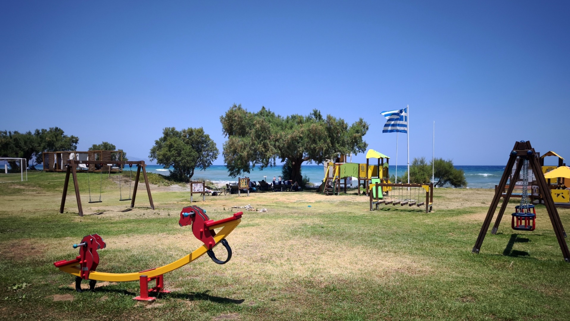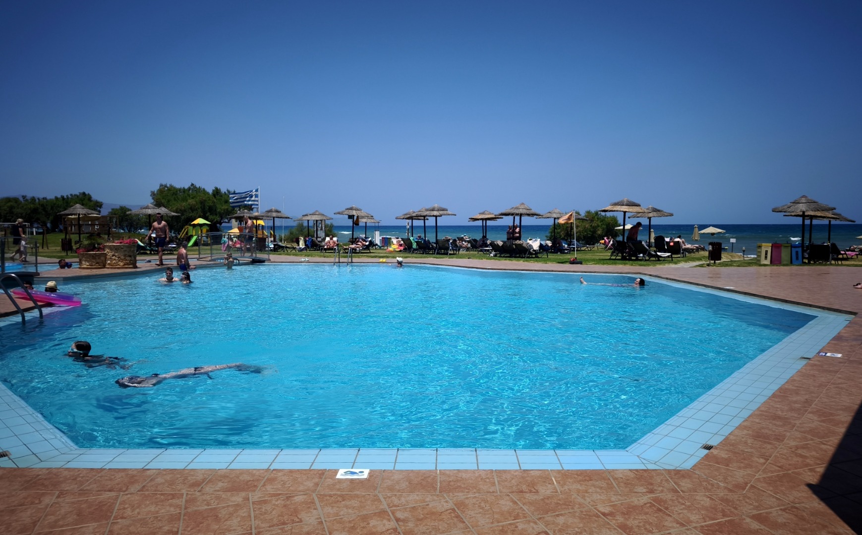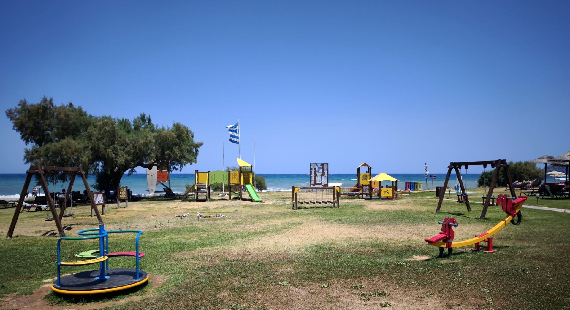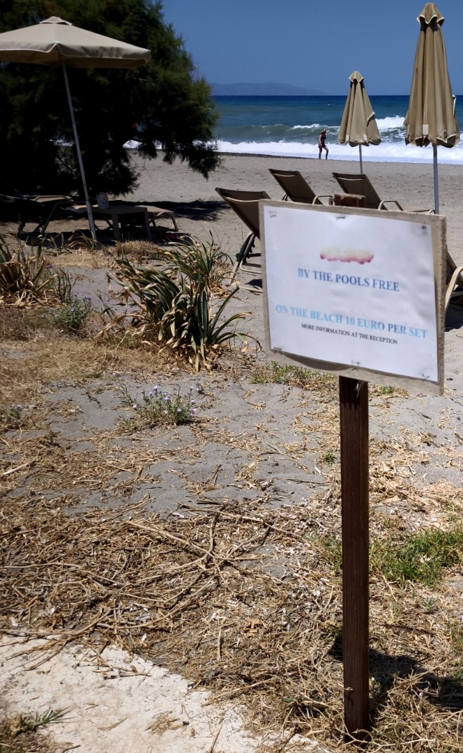 bezpośrednio przy hotelu szeroka, długa, piaszczysta nagradzana Błękitną Flagą leżaki i parasole (ok. 10 euro/dzień) ręczniki plażowe (ok. 10 euro/tydz. + 10 euro depozyt)
