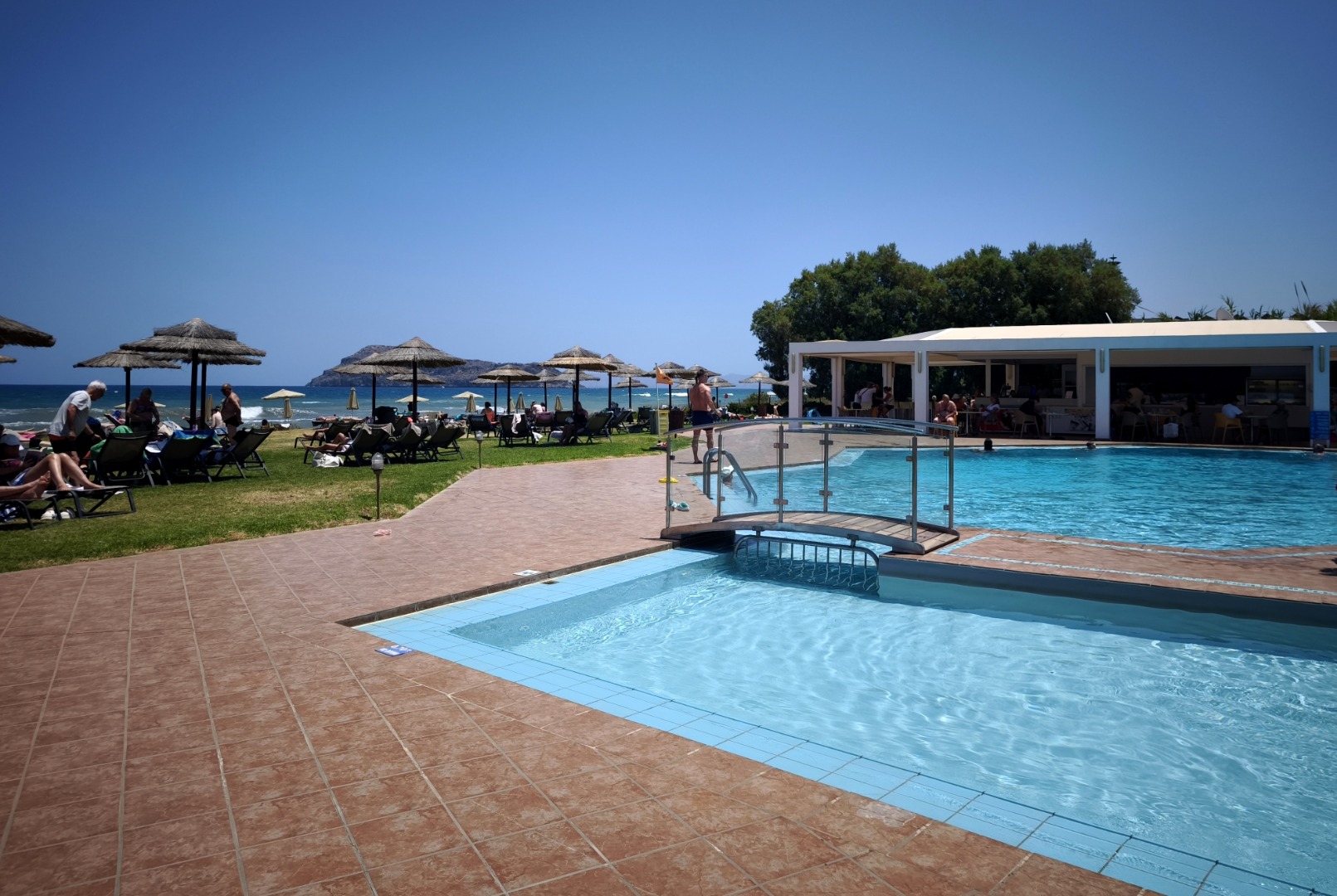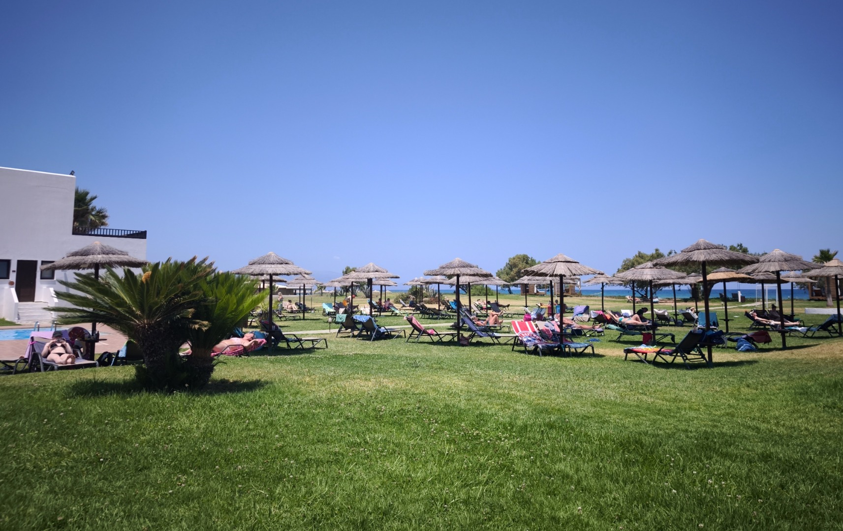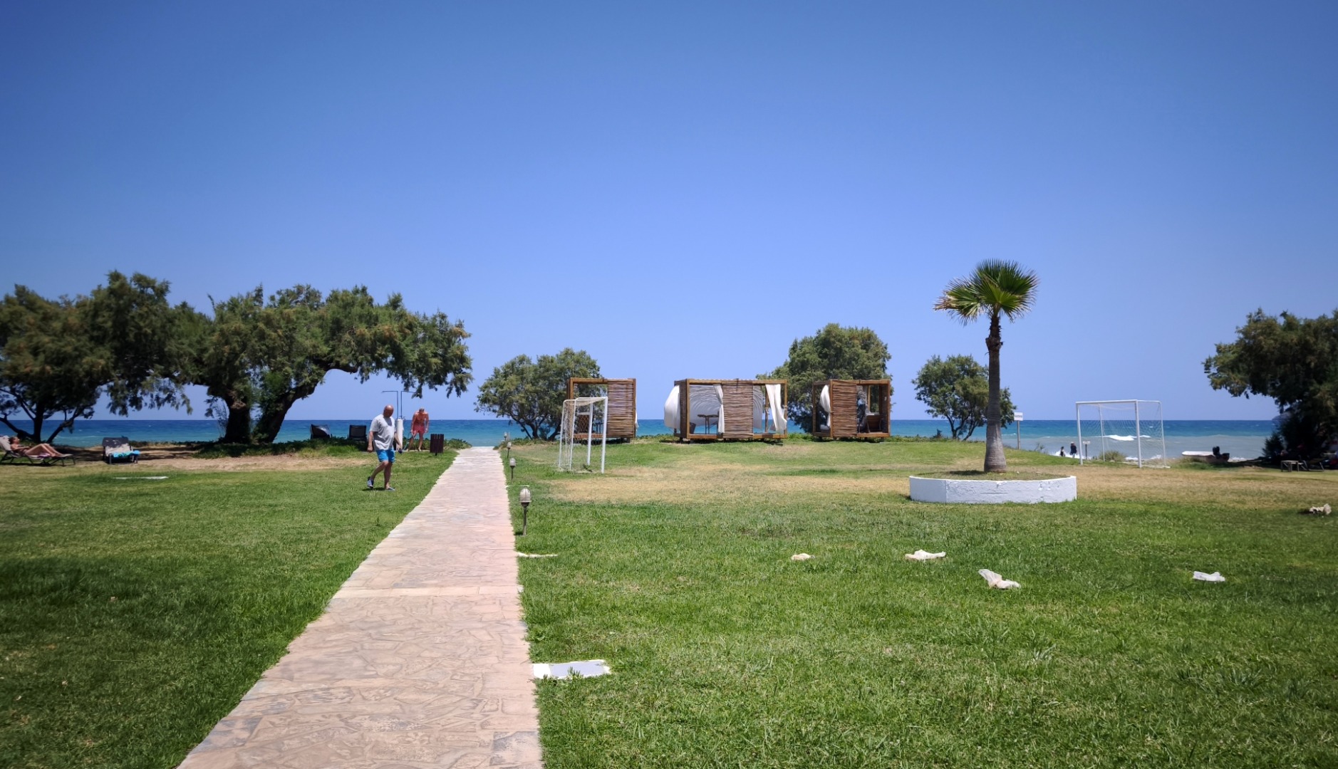 bezpośrednio przy hotelu szeroka, długa, piaszczysta nagradzana Błękitną Flagą leżaki i parasole (ok. 10 euro/dzień) ręczniki plażowe (ok. 10 euro/tydz. + 10 euro depozyt)