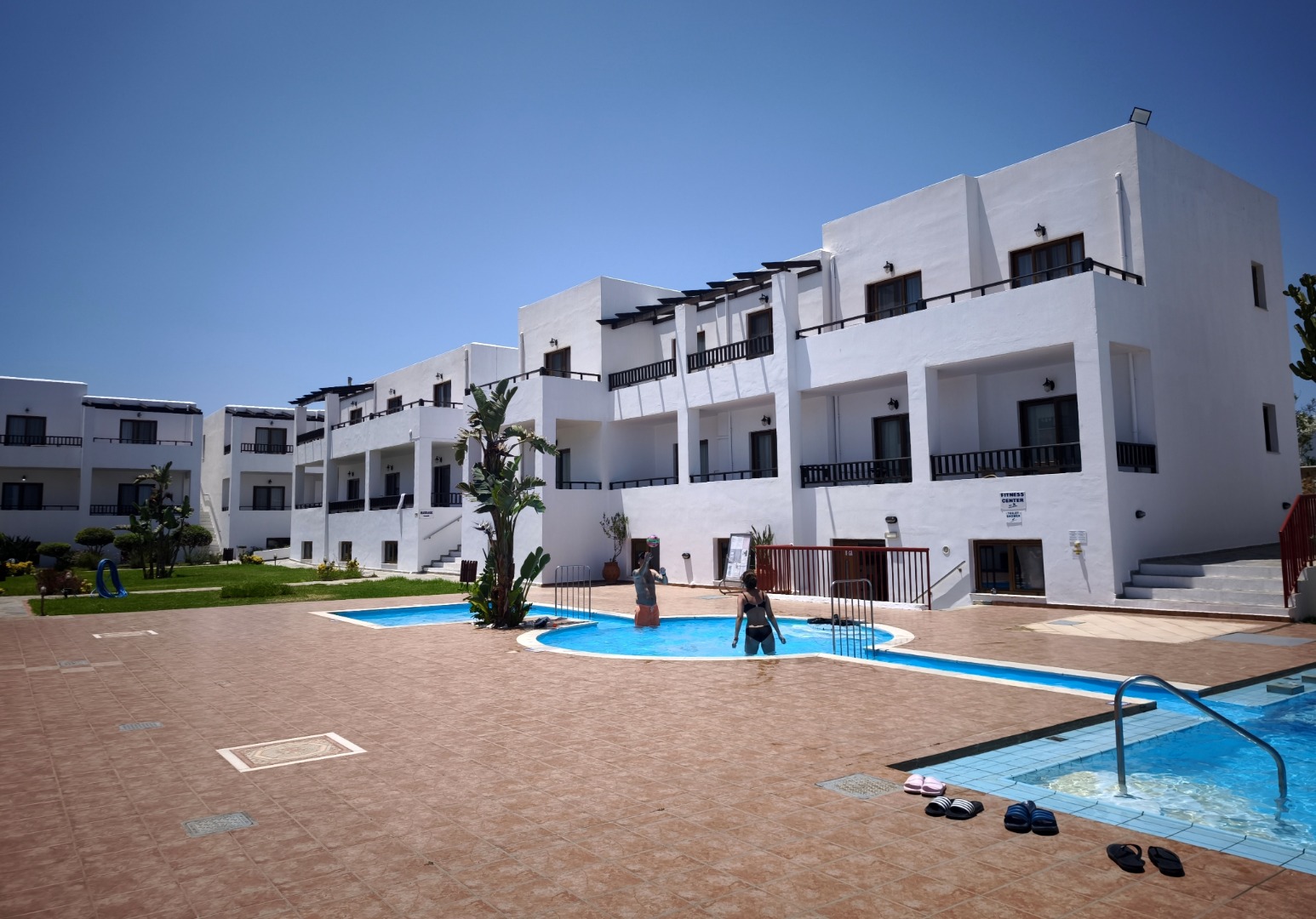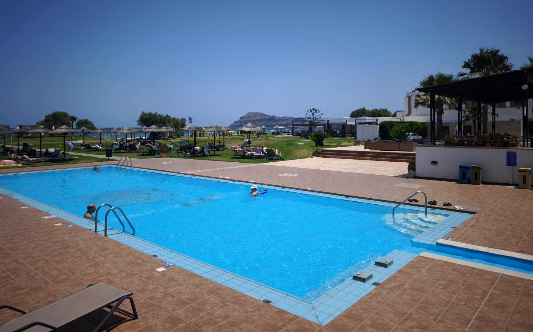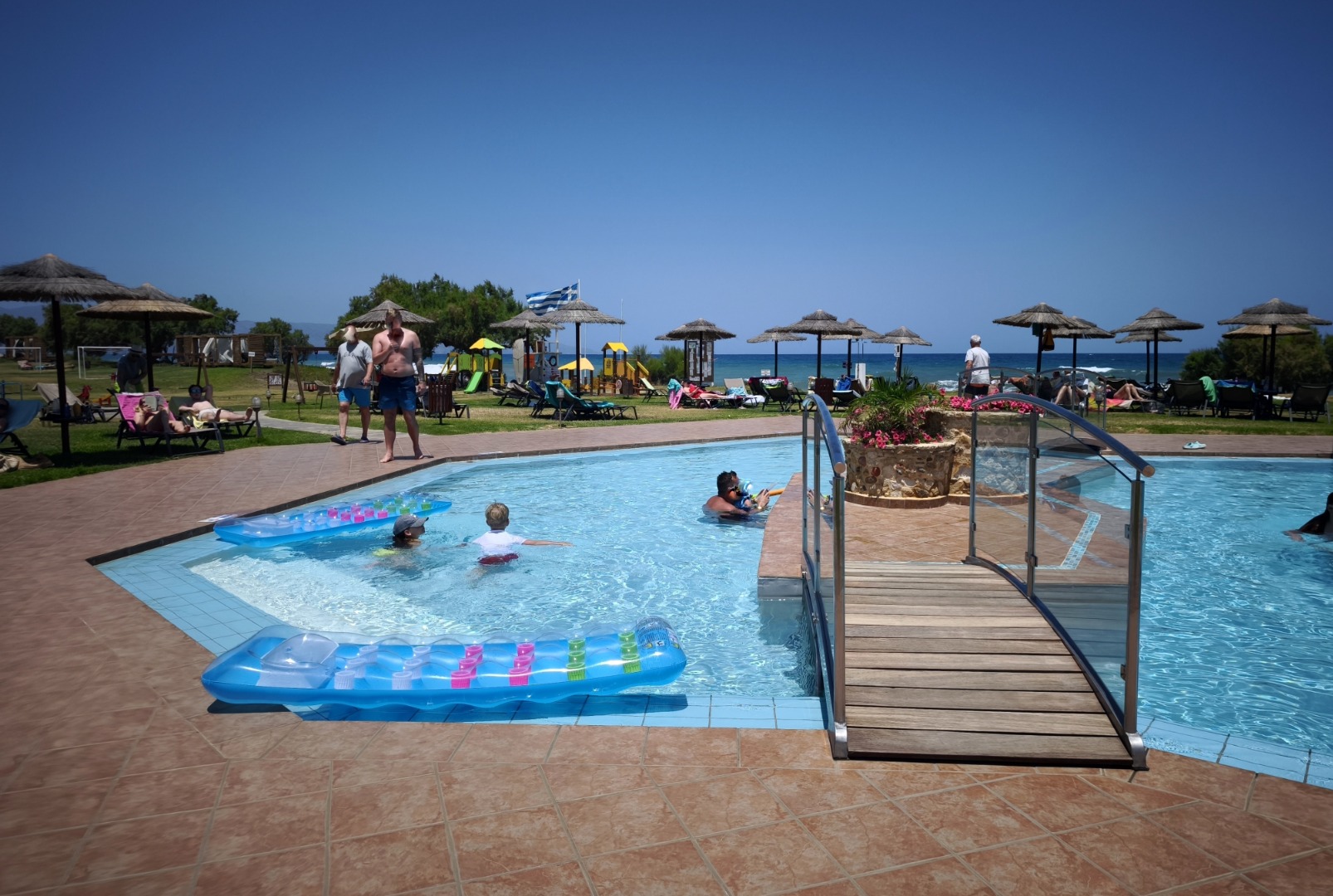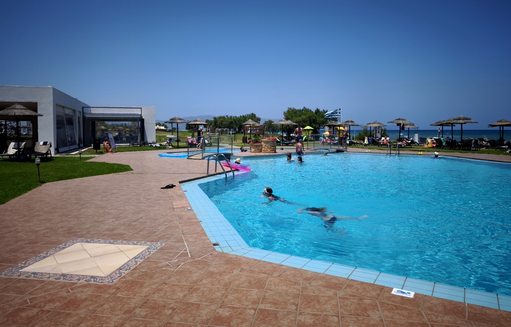 2 baseny ze słodką wodą leżaki i parasole przy basenie tenis stołowy siłownia animacje hotelowe np. wieczór grecki