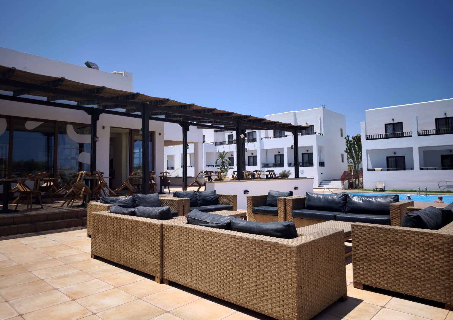 zabudowa to kompleks 4 jednopiętrowych budynków recepcja 24 h restauracja, bar w lobby i przy basenie Wi-Fi (bezpłatnie) minimarket parking 146 pokoi kategoria lokalna 3* hotel posiada usprawnienia dla osób o ograniczonej sprawności ruchowej