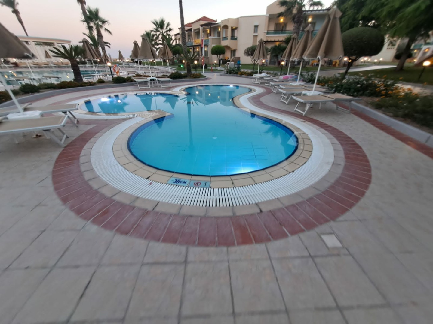 leżaki i parasole przy basenach