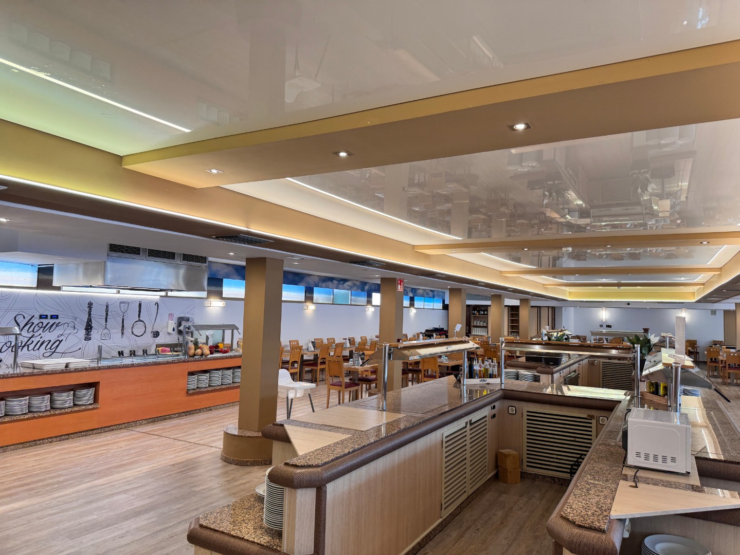 - Restauracja główna serwuje dania w formie bufetu, oferując kuchnię międzynarodową i lokalną.