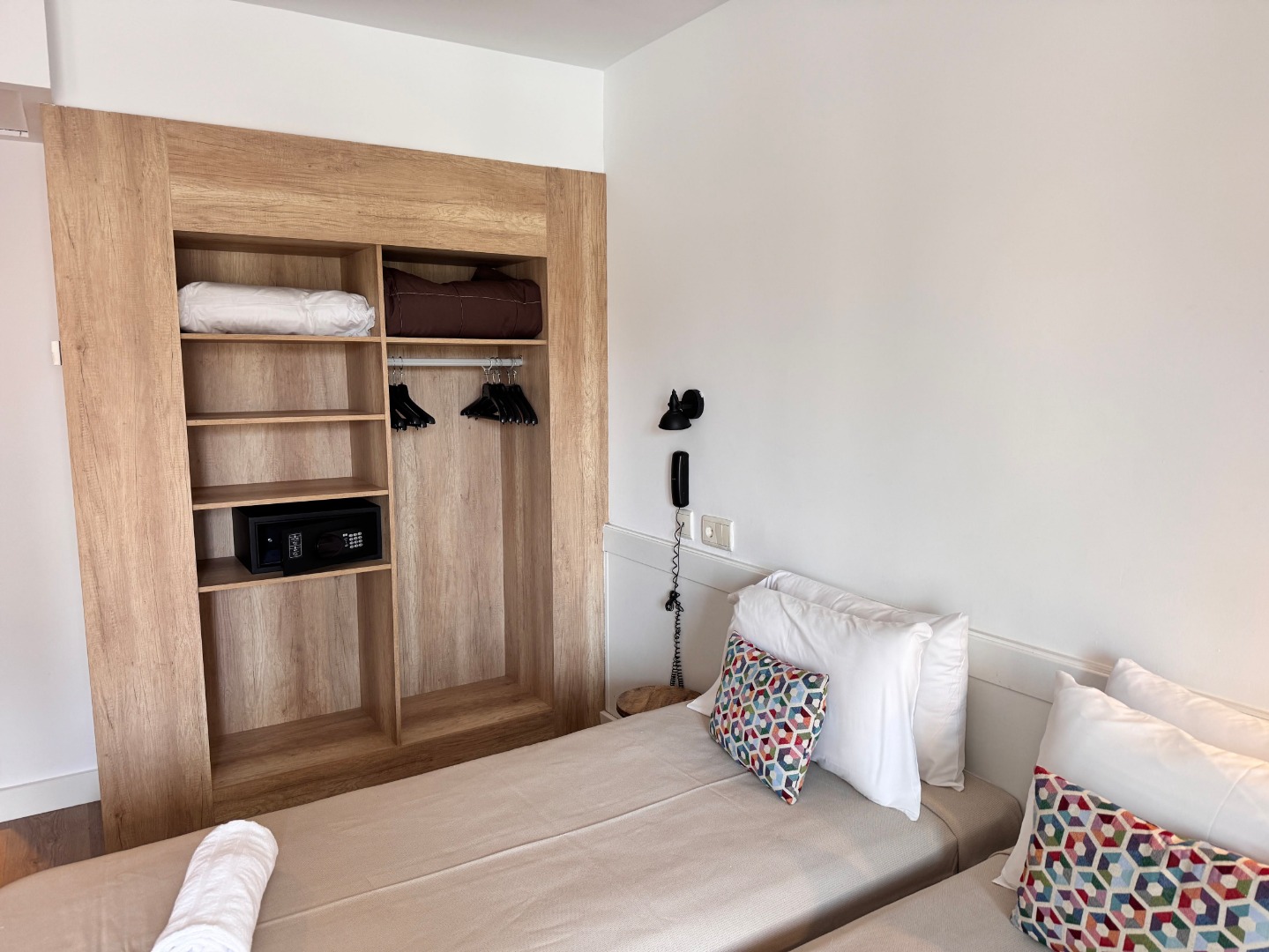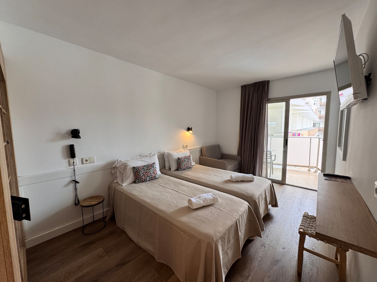 - Pokój standardowy: Powierzchnia ok. 20-21 m², dla maksymalnie 3-4 osób, jedno łóżko podwójne lub dwa łóżka pojedyncze, możliwa dostawka lub łóżeczko dziecięce na życzenie. Balkon lub taras, widok na teren hotelu, miasto lub basen.