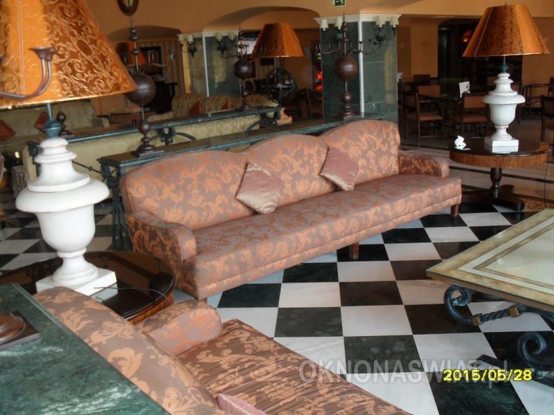 | Do dyspozycji gości | Przestronna recepcja z lobby, restauracja, 3 bary w tym 1 przy basenie, ogród (11000 m2) z dużym basenem, brodzik dla dzieci (w basenach słodka woda), leżaki i parasole bezpłatne, mini klub (lipiec-sierpień), plac zabaw dla dzieci, opiekunka (płatna), pokój gier (płatne), stanowiska internetowe płatne, wifi płatne, wypożyczalnia samochodów. Hotel zapewnia ręczniki basenowe (depozyt, możliwa opłata za wymianę). Na plaży leżaki i parasole w cenie ok. 3,5 Eur/os. |