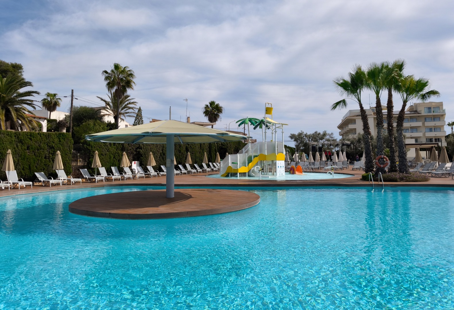 przy basenach dostępne są bezpłatne leżaki i parasole, ręczniki za depozytem