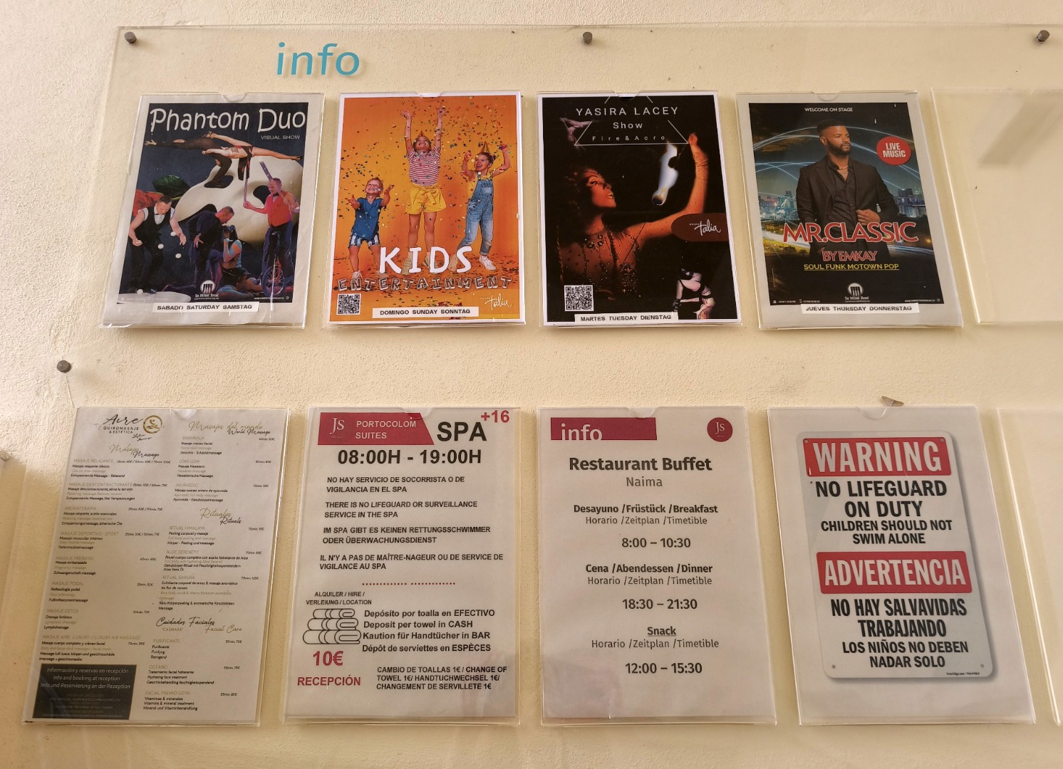2 bary: lobby bar (lody, ciasta, drinki, koktajle) oraz snack-bar przy basenie (przekąski, zimne i ciepłe napoje, lody, menu dla dzieci).