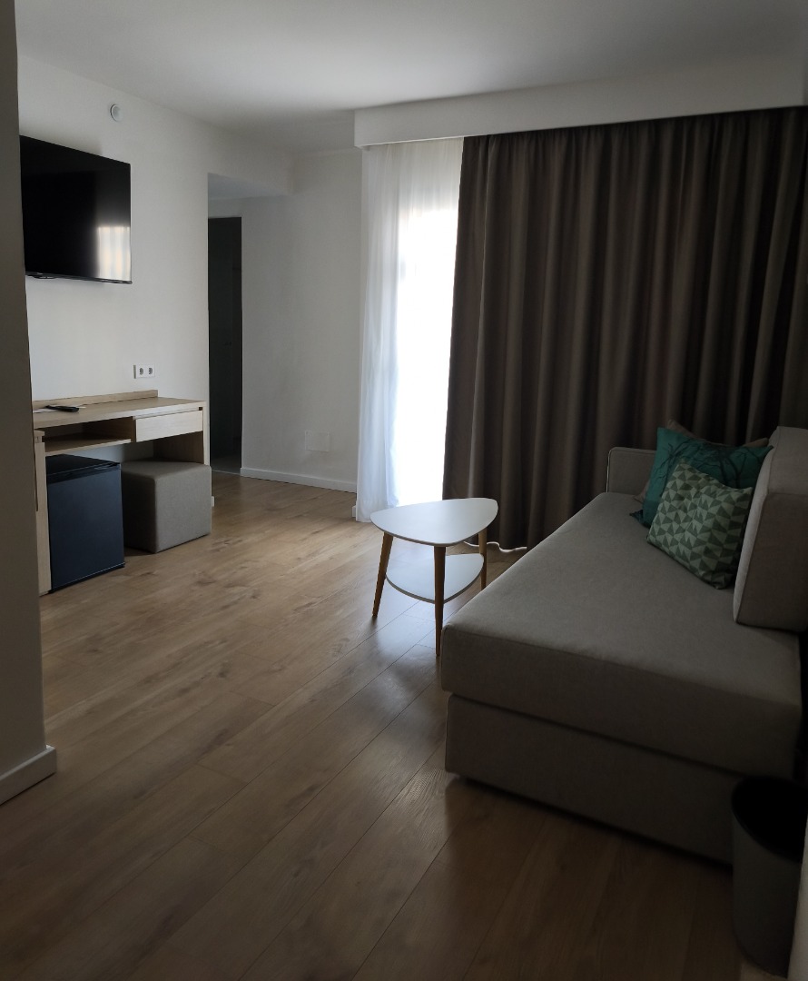 Suite: Powierzchnia ok. 30 m², dwupomieszczeniowy układ (oddzielna sypialnia i salon), balkon ze stolikiem i krzesełkami, klimatyzacja, łazienka z prysznicem (niektóre pokoje z wanną), suszarka do włosów, lusterko kosmetyczne, telewizor, telefon, lodówka, menu poduszkowe, możliwość dostawki dla 2 osób (sofa), bezpłatne łóżeczko dla dziecka do 2 lat na zamówienie przed przyjazdem. Sejf dostępny za opłatą.