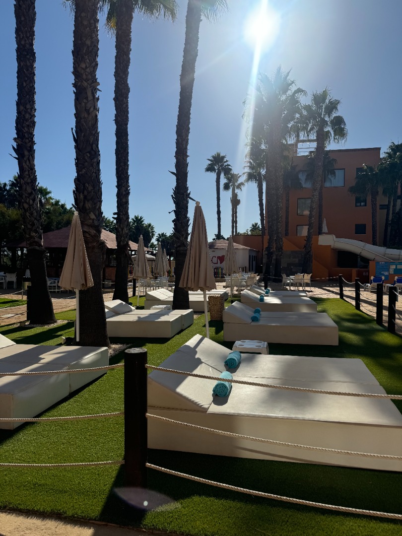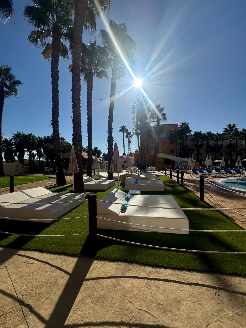 2 baseny, w tym 1 ze zjeżdżalniami, jacuzzi, taras słoneczny z leżakami i parasolami, ręczniki basenowe (depozyt ok. 10 Euro/os, wymiana ręcznika 1 Euro).