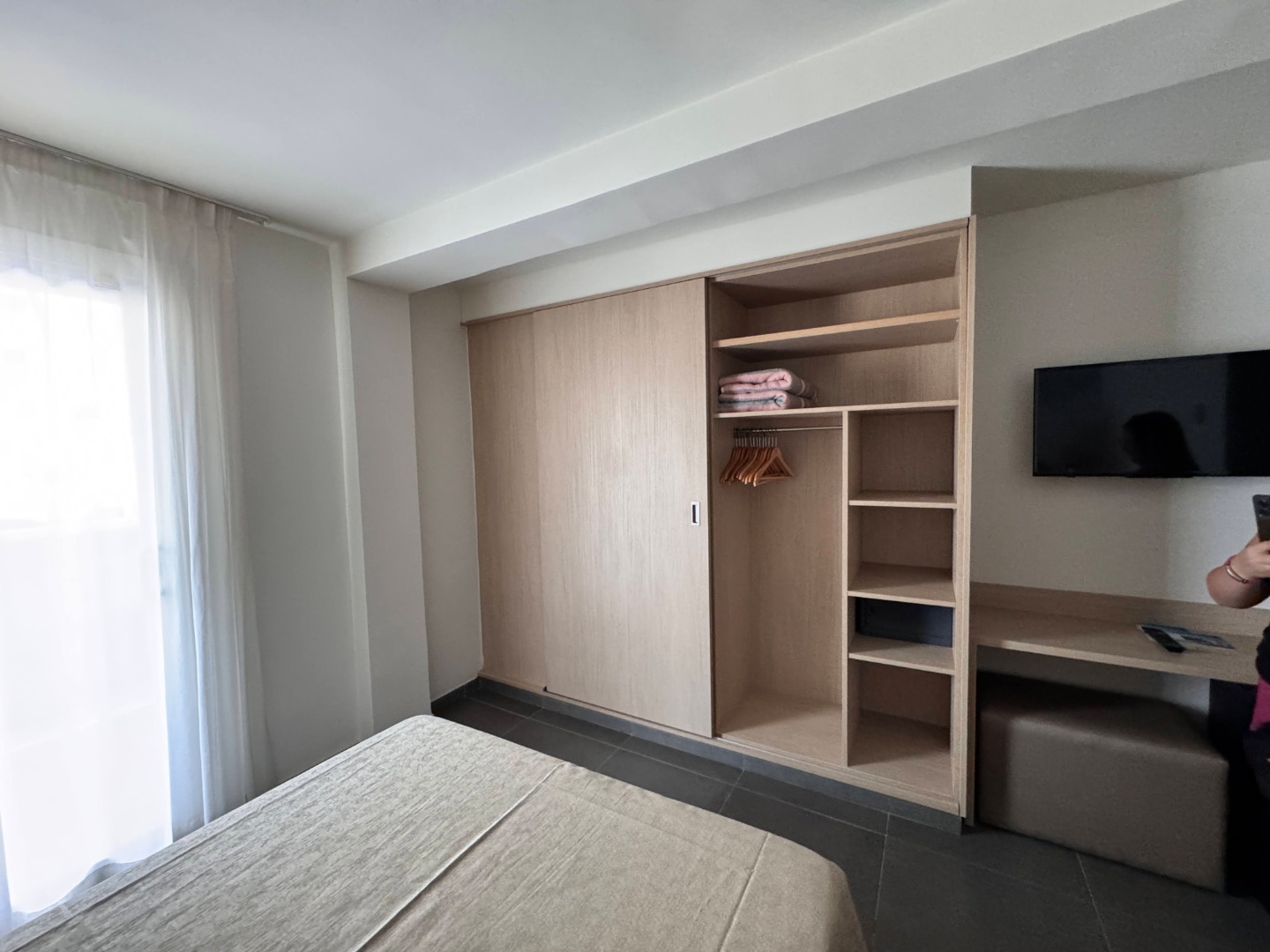 - Pokój jednoosobowy: Balkon, łazienka, klimatyzacja.