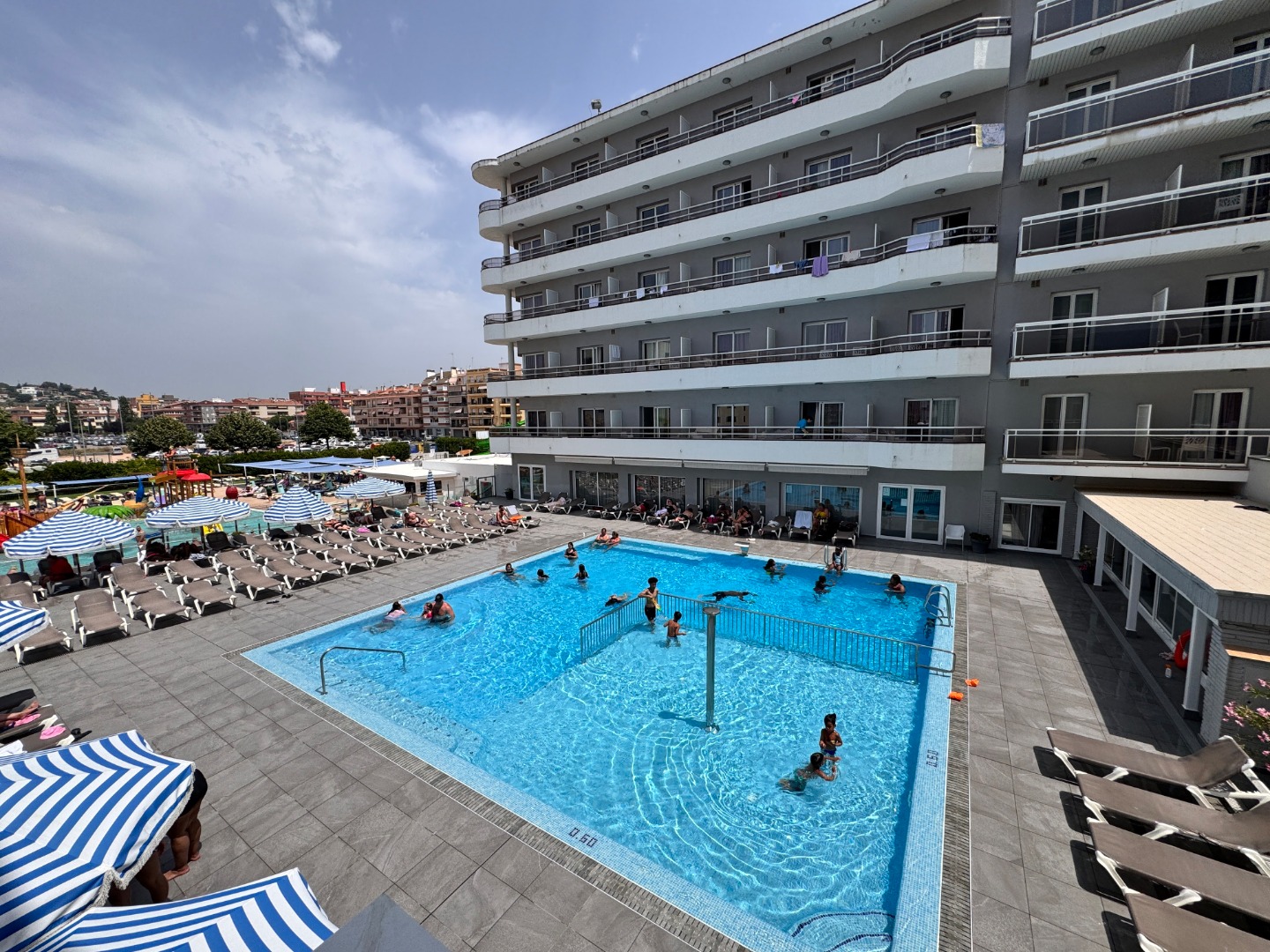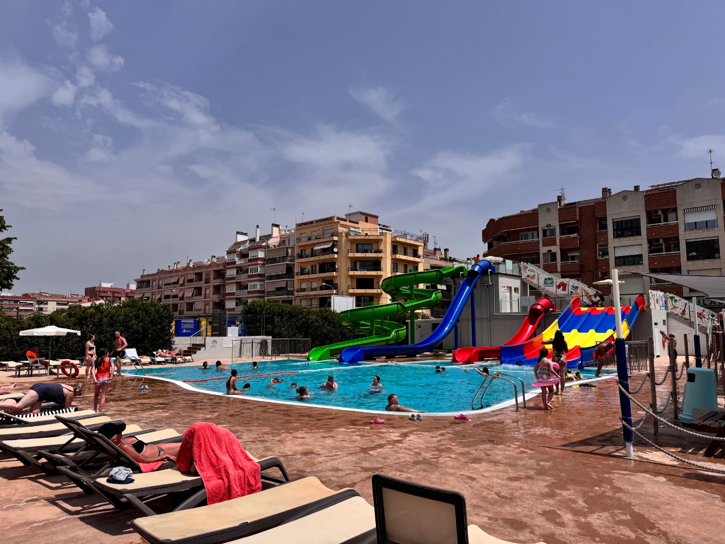 - 3 baseny zewnętrzne ze słodką wodą, w tym basen główny o prostokątnym kształcie, basen dla dzieci z wodnym placem zabaw oraz basen z 7 zjeżdżalniami (basen dla dzieci i basen ze zjeżdżalniami czynne w terminie 24.05-25.10)