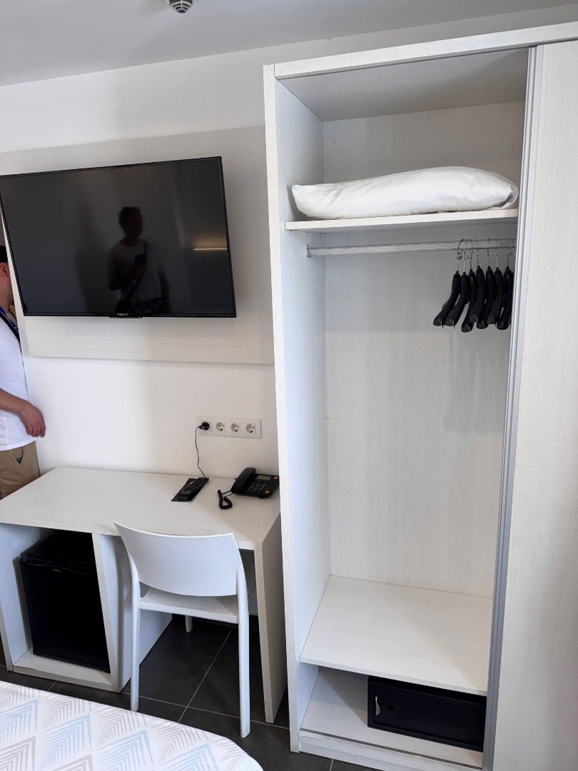 - Pokój standardowy: Powierzchnia ok. 17 m², dla 2 osób z możliwością 2 dostawek (dla dzieci lub jednej dla osoby dorosłej). Balkon lub taras (stolik i krzesełka), widok na okolicę lub za dopłatą widok na morze.
