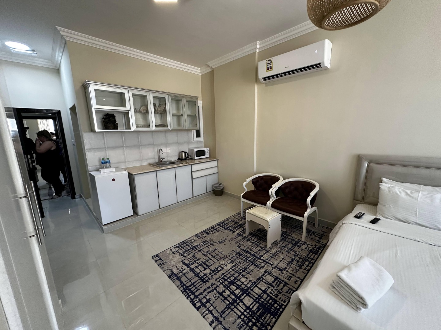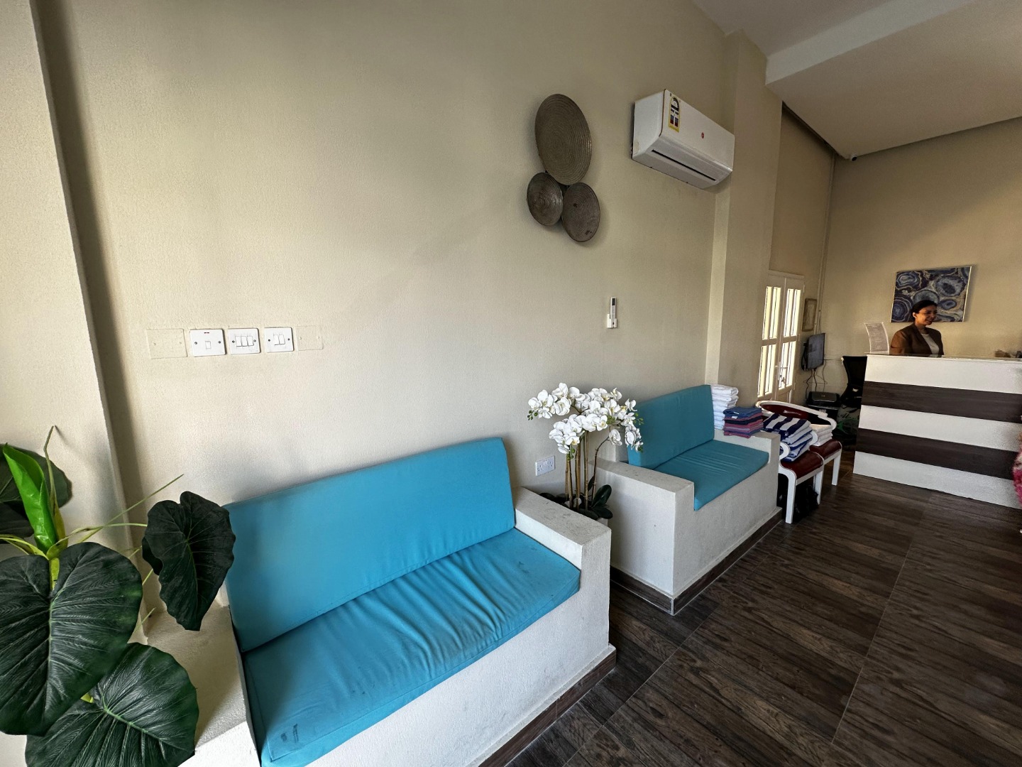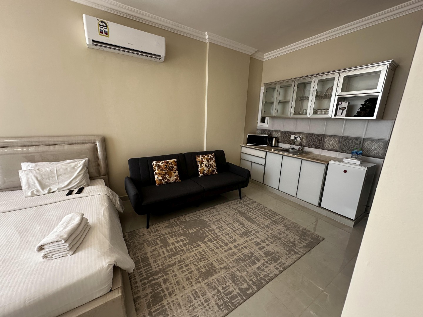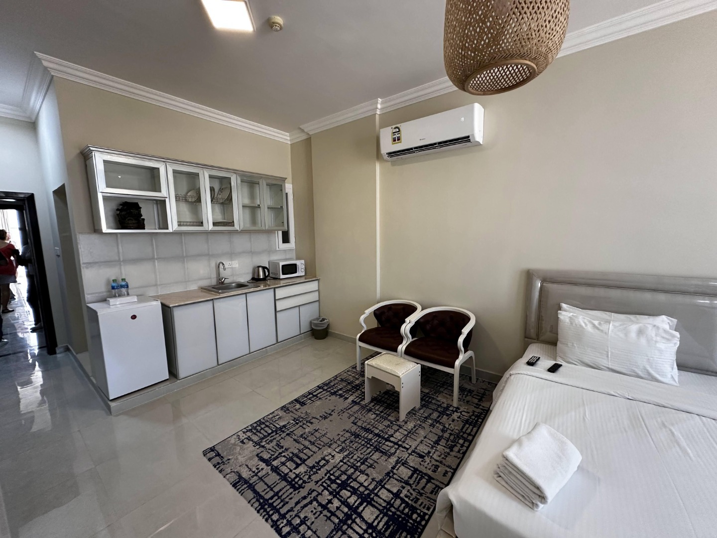 Hotel posiada 32 pokoje. Wszystkie wyposażone w aneks kuchenny, indywidualnie sterowaną klimatyzację, internet Wi-Fi, TV-sat oraz zestaw do parzenia kawy i herbaty. Dostępne pokoje z widokiem na sąsiednie budynki lub na morze. Pokoje nie posiadają balkonów.