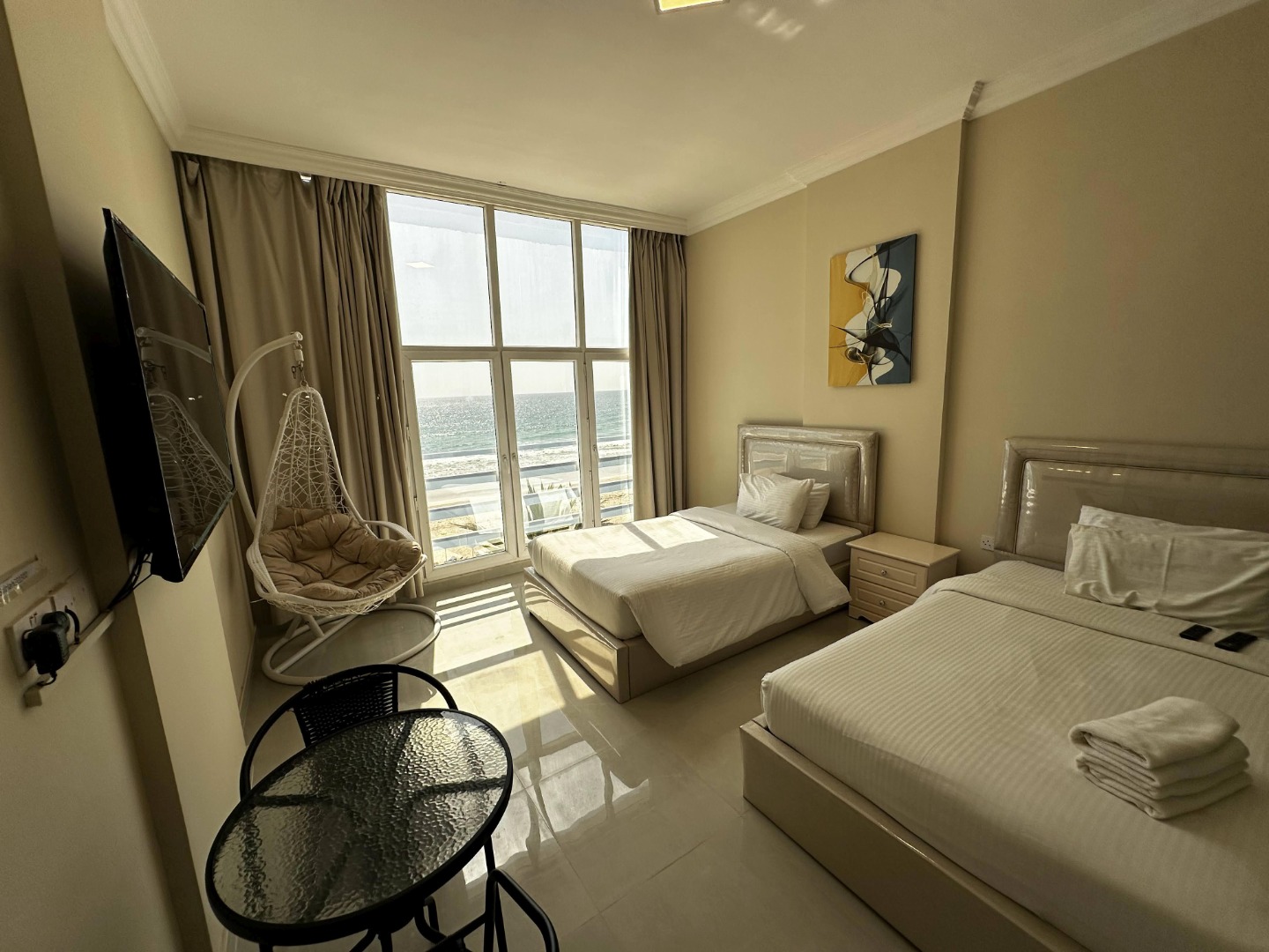 Położony jest przy plażach Al Dahariz w Salalah, Oman, z zapierającymi dech widokami na ocean i malownicze zachody słońca.