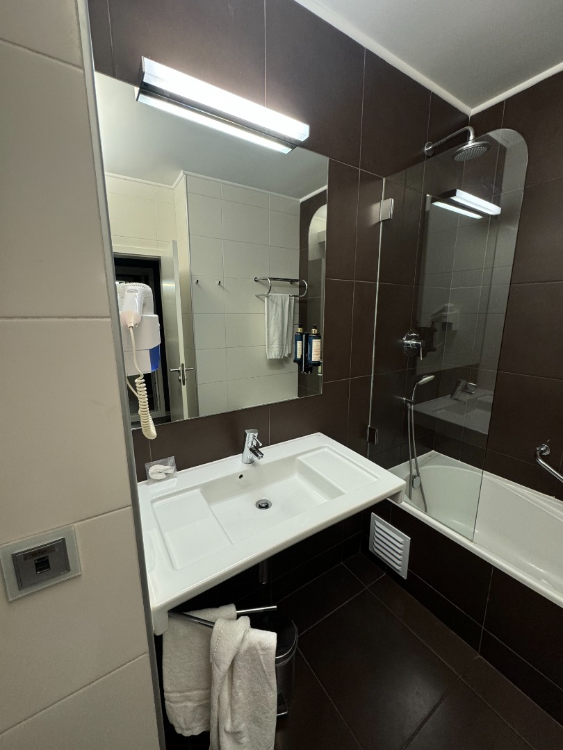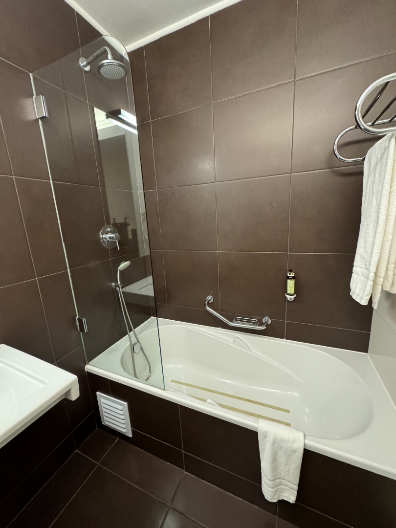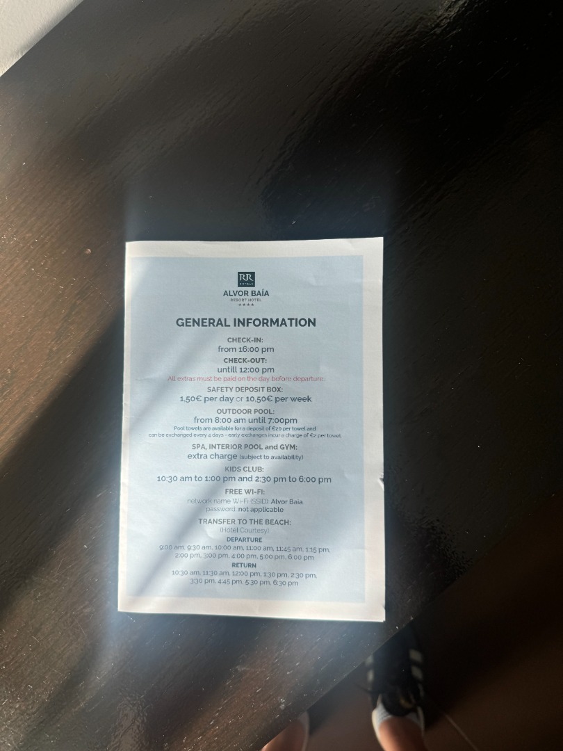 - Pozostałe informacje: room service (płatny), sala konferencyjna, sklepik z prasą, pralnia (płatna), przechowalnia bagażu, wypożyczalnia samochodów, parking, taras słoneczny z leżakami i parasolami.