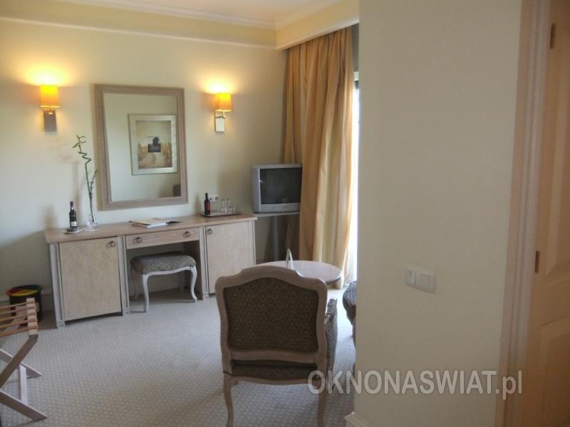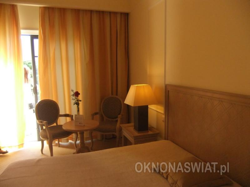 | Pokoje | standardowy: 2-os. (możliwość 1 dostawki), ok. 30 m², elegancki i zadbany, łazienka (wanna, prysznic, wc; suszarka, szlafrok i kapcie), internet bezprzewodowy, telewizja satelitarna, telefon, sejf, na powitanie butelka lokalnego wina i ciasto, mini-bar (płatny); balkon (stolik i krzesełka), widok na ogród, góry lub basen. |