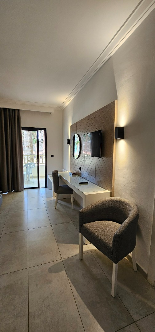 • Pokój łączony (connected): Dwa pokoje standardowe połączone drzwiami, łącznie ok. 56 m², dla maksymalnie 4-5 osób, widok na ogród lub teren hotelu, balkon lub taras.