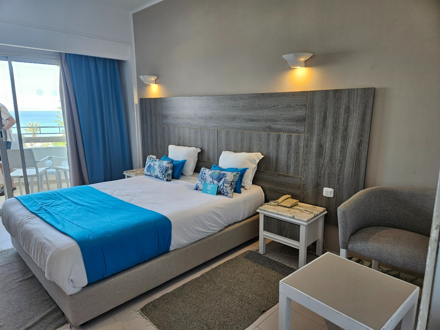 - Standard Room: Powierzchnia ok. 24-26 m², dla maksymalnie 3 osób (możliwość 1 dostawki lub łóżeczka dla dziecka do 2 lat na zamówienie przed przyjazdem). Balkon lub taras z widokiem na ogród lub za dopłatą na morze.