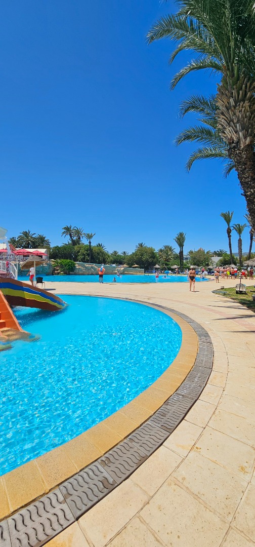 • 3 baseny odkryte ze słodką wodą, w tym jeden o powierzchni około 1200 m² z aquaparkiem