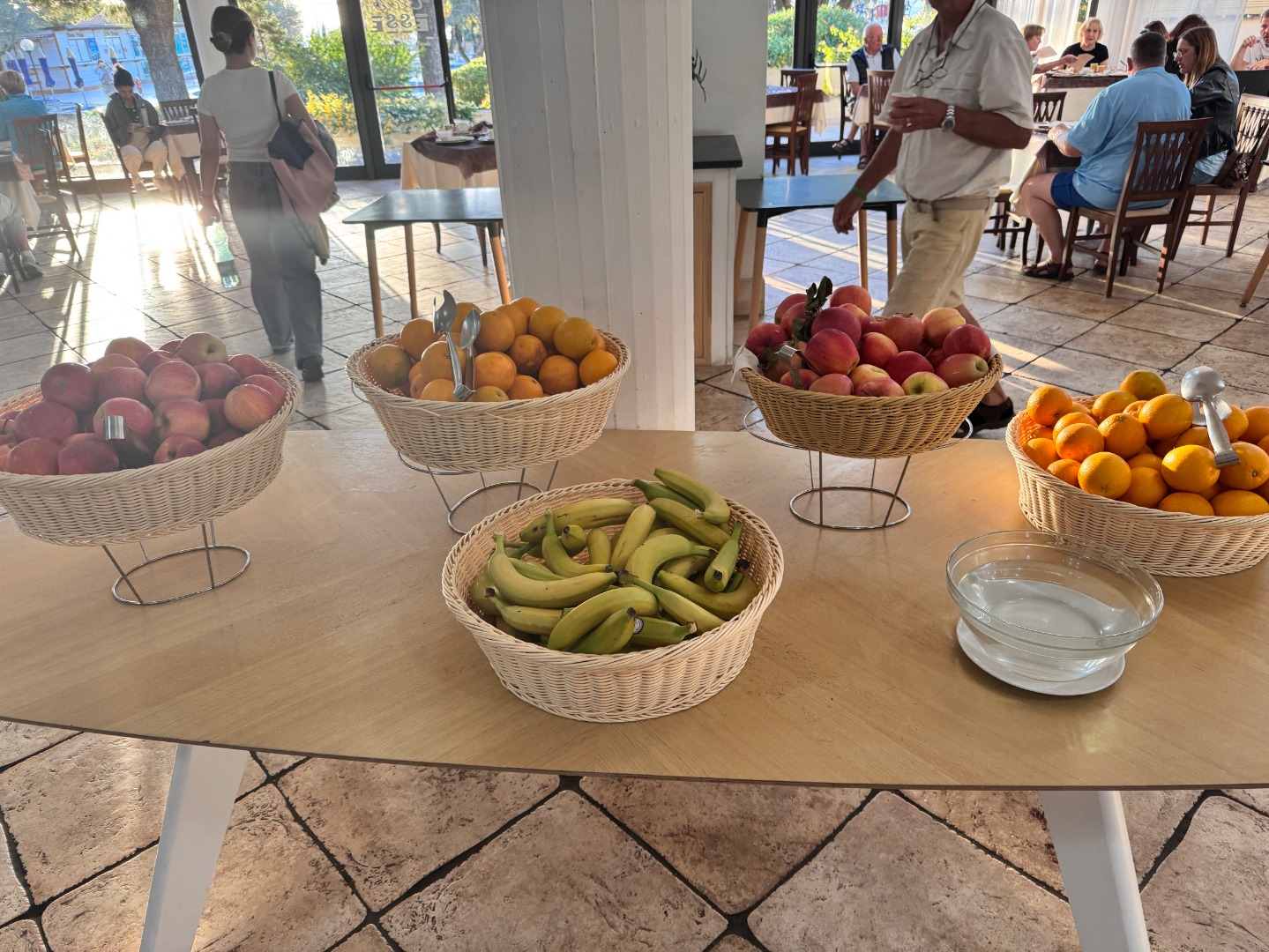 - Woda, kawa, herbata, soki, lokalne napoje bezalkoholowe, lokalne napoje alkoholowe i likiery (piwo, wino, wermut, gin, rum, grappa, limoncello, likier anyżowy) oraz koktajle na bazie tych alkoholi dostępne w wyznaczonym barze (10.00-23.00).