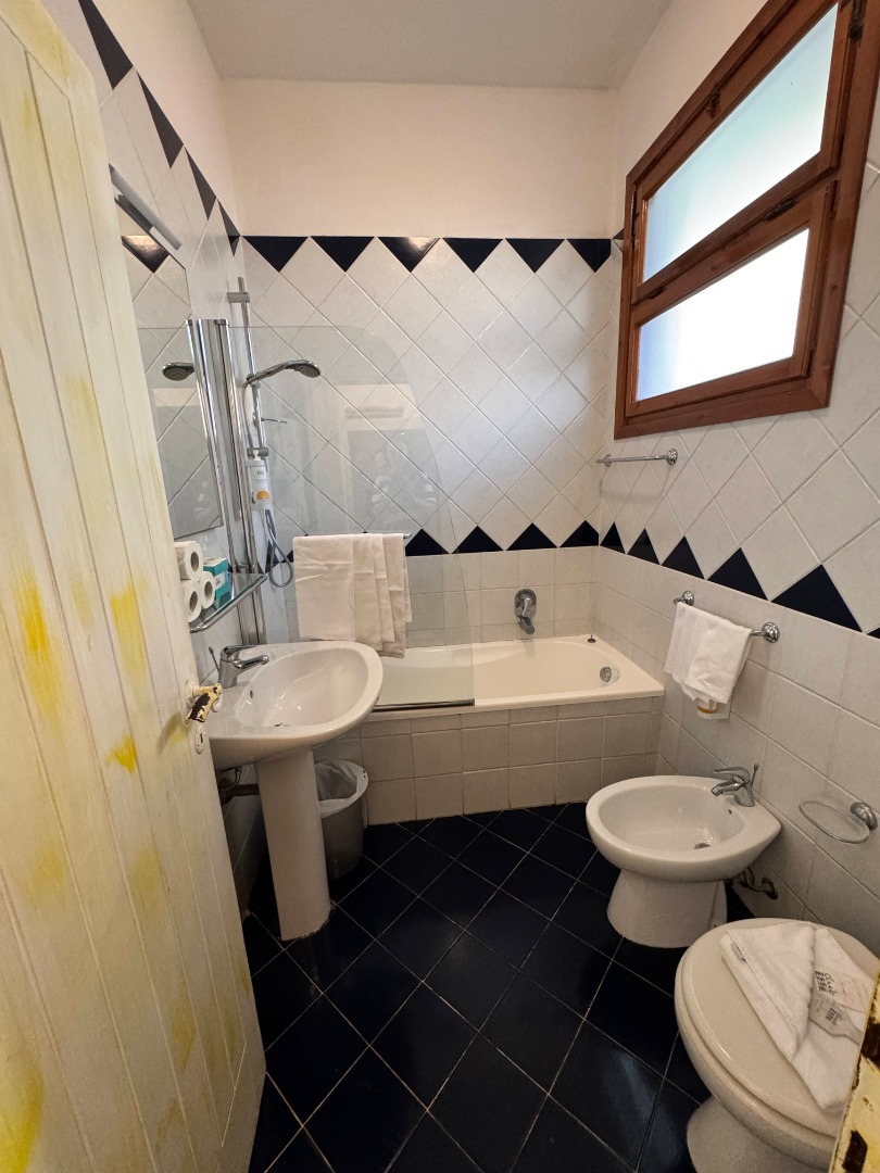 - W każdym pokoju znajduje się prywatna łazienka z prysznicem lub wanną, toaletą, bidetem, umywalką, suszarką do włosów oraz zestawem kosmetyków.